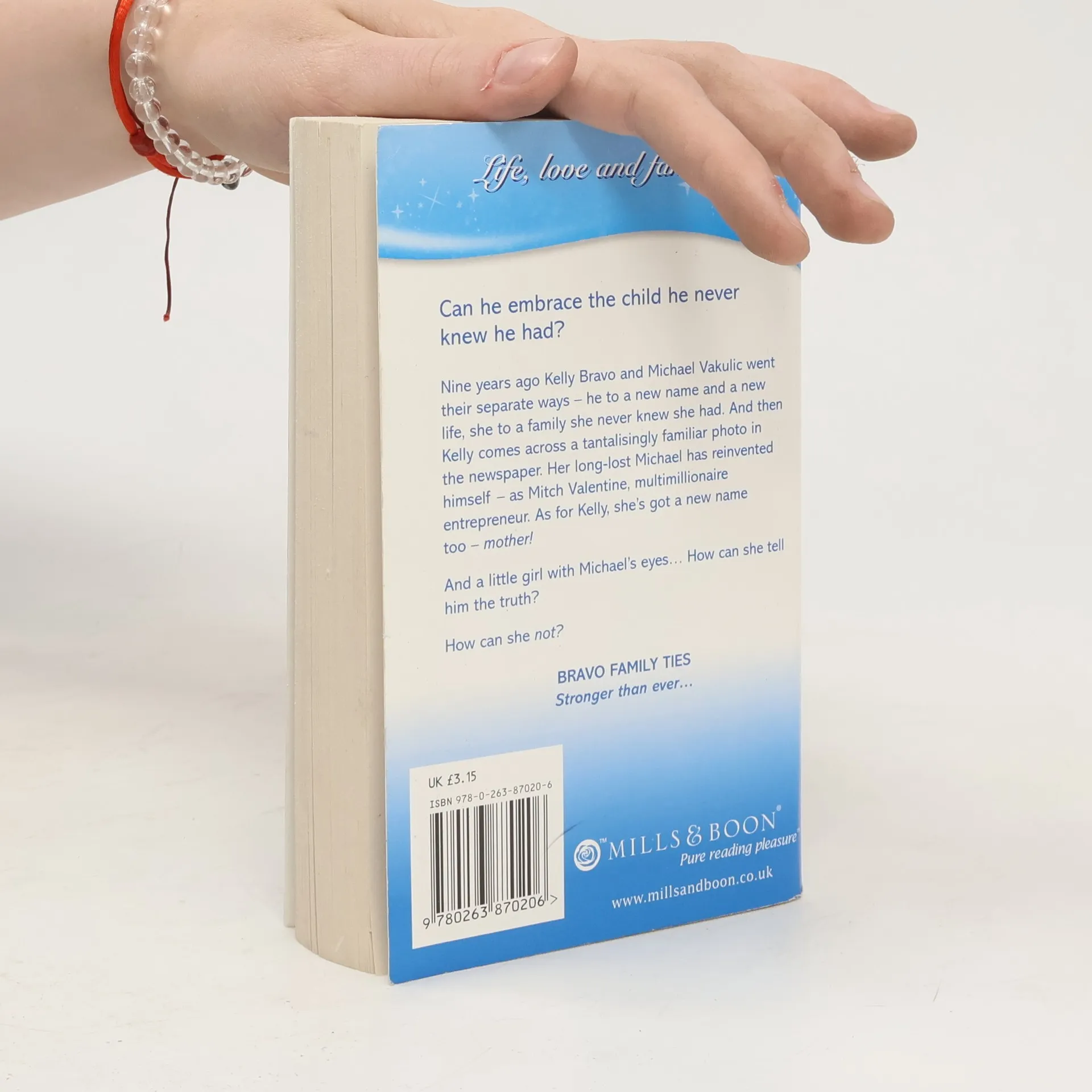 Can he embrace the child he never knew he had? Nine years ago Kelly Bravo and Michael Vakulic went their separate ways he to a new name and a new life, she to a family she never knew she had. And then Kelly comes across a tantalisingly familiar photo in the newspaper. Her long-lost Michael has reinvented himself as Mitch Valentine, multimillionaire entrepreneur. As for Kelly, she's got a new name too mother! And a little girl with Michael's eyes How can she tell him the truth? How can she not? BRAVO FAMILY TIES Stronger than ever
