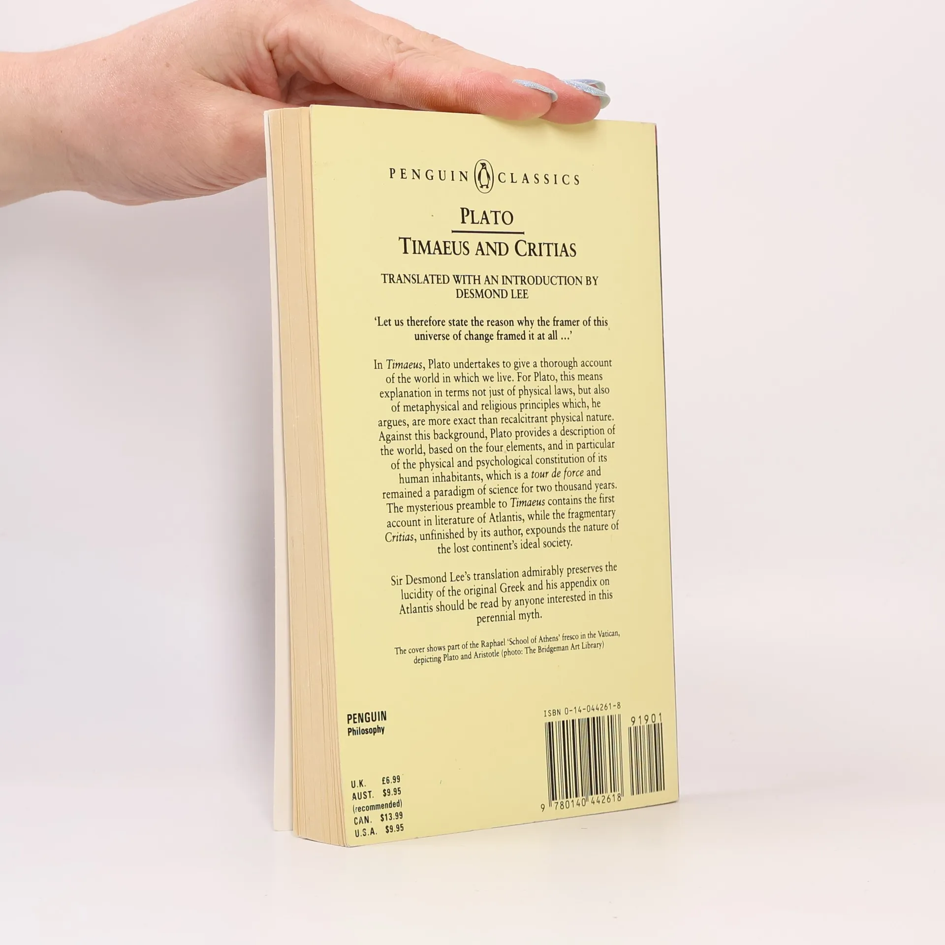 Taking the form of dialogues between Socrates, Timaeus, Critias and Hermocrates, these two works are among Plato's final writings. In Timaeus, he gives a thorough account of the world in which we live, describing a cosmos composed of four elements - earth, air, fire and water - which combine to give existence to all things. An exploration of the origins of the universe, life and humanity, which outlines not just physical laws but also metaphysical and religious principles, it remained a paradigm of science for two thousand years. The mysterious preamble to Timaeus contains the first account in literature of Atlantis, while the fragmentary Critias, unfinished by its author, provides a spellbinding description of the lost continent's ideal society, which Critias asserts was created by the god-like children of Poseidon himself.
