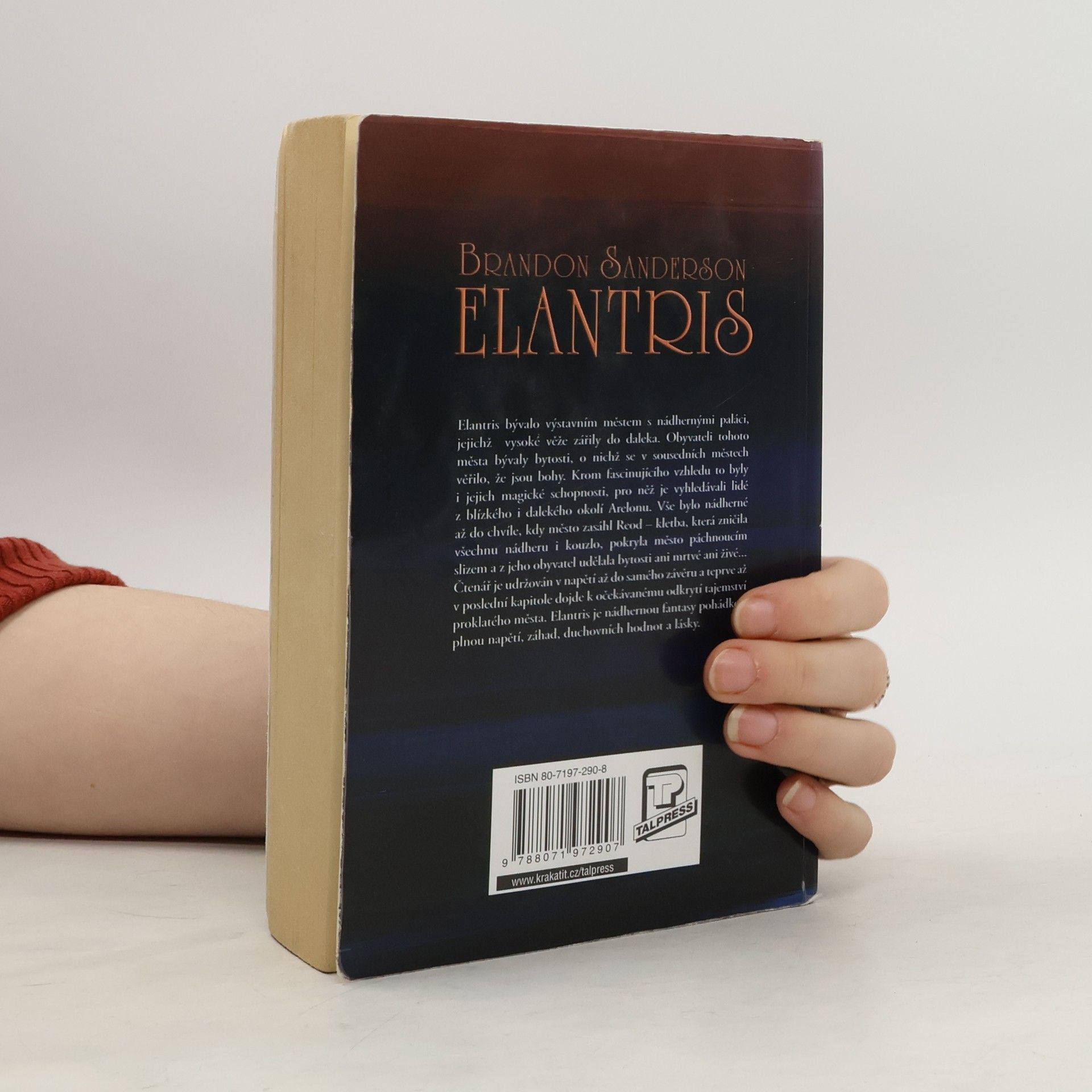 Elantris bývalo výstavním městem s nádhernými paláci, jejichž vysoké věže zářily do daleka. Obyvateli tohoto města bývaly bytosti, o nichž se v sousedních městech věřilo, že jsou bohy. Krom fascinujícího vzhledu to byly i jejich magické schopnosti, pro něž je vyhledávali lidé z blízkého i dalekého okolí Arelonu. Vše bylo nádherné až do chvíle, kdy město zasáhl Reod – kletba, která zničila všechnu nádheru i kouzlo, pokryla město páchnoucím slizem a z jeho obyvatel udělala bytosti ani mrtvé ani živé… Čtenář je udržován v napětí až do samého závěru a teprve až v poslední kapitole dojde k očekávanému odkrytí tajemství proklatého města. Elantris je nádhernou fantasy pohádkou plnou napětí, záhad, duchovních hodnot a lásky. Přeložila Milena Poláčková.