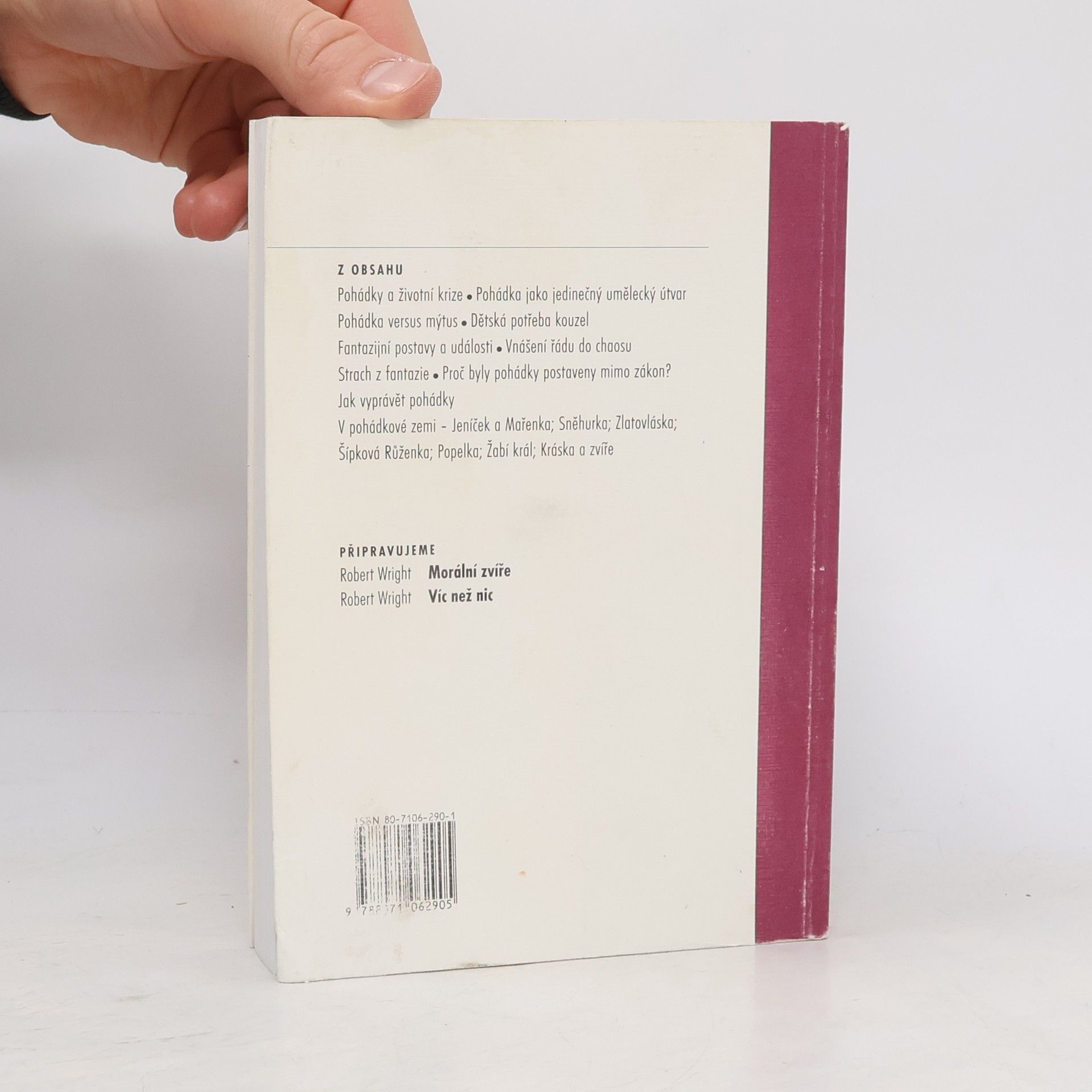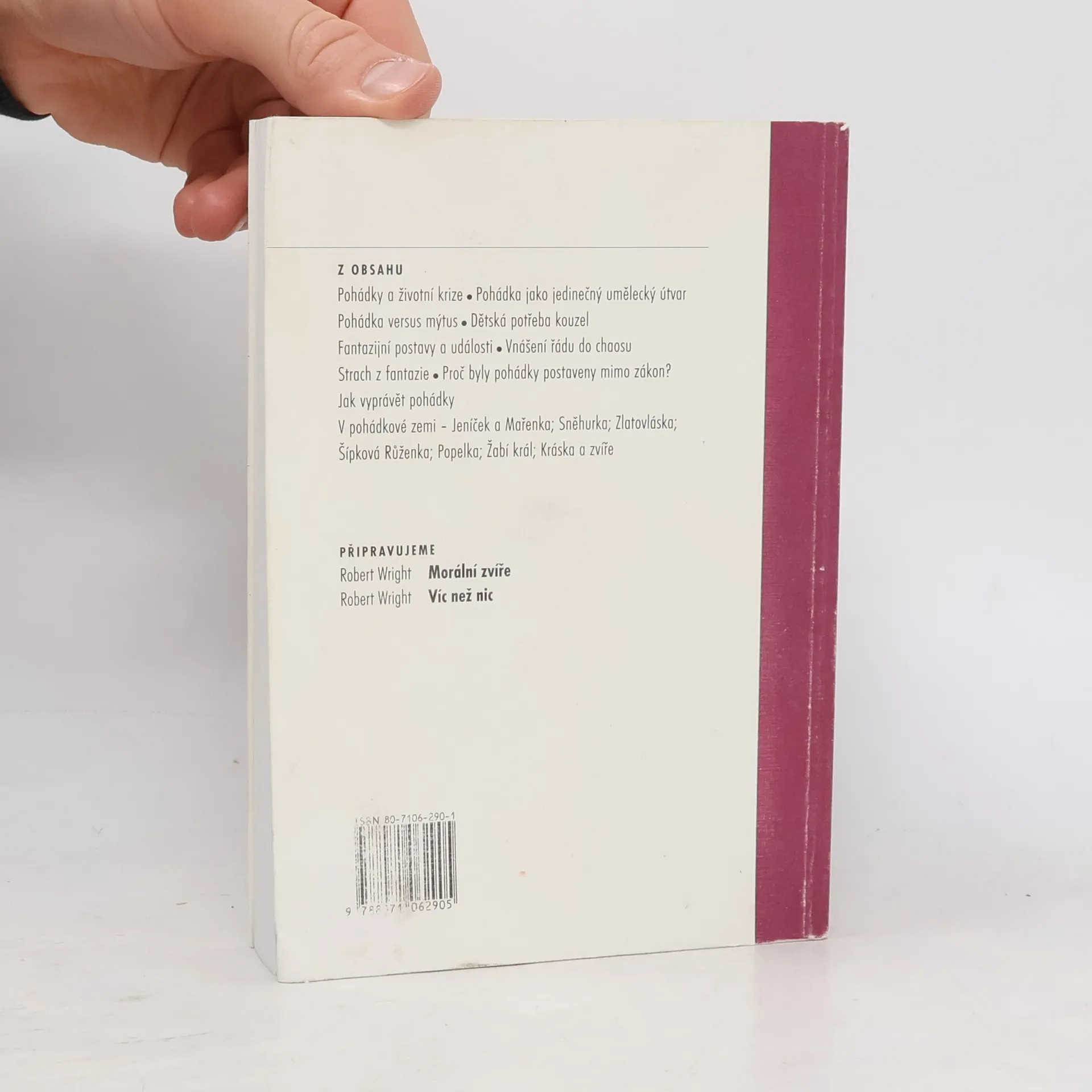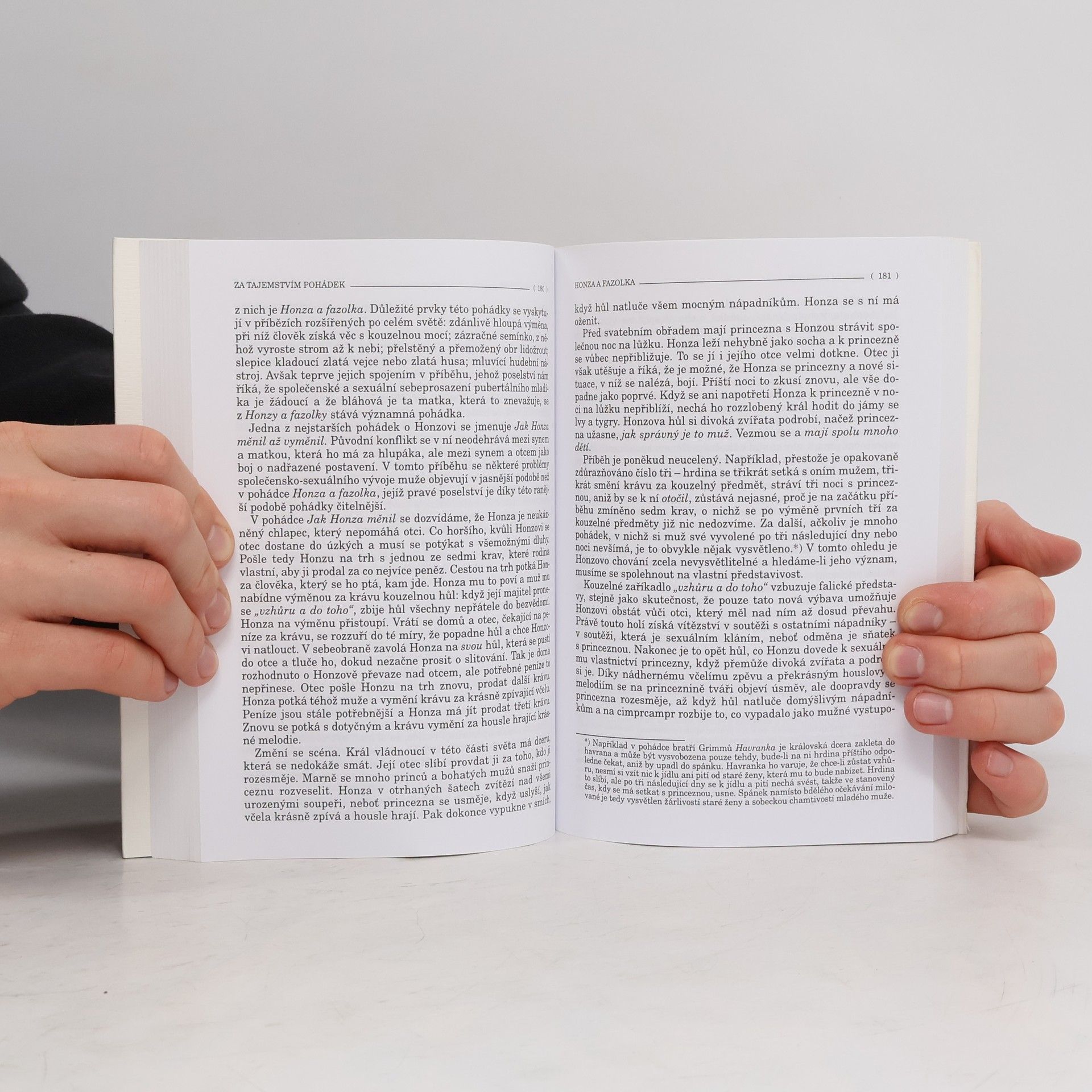 Podtitul: Proč a jak je číst v dnešní době Významný profesor psychologie a psychiatrie předkládá na základě psychoanalýzy výklad hlubšího významu pohádek. V první části knihy se autor, terapeut těžce narušených dětí, zabývá významem dětské literatury, především pohádky jako jedinečného uměleckého tvaru, jehož hlavním úkolem je pomoci dítěti nalézt vlastní identitu, nalézt životní smysl.Dítě se seznamuje prostřednictvím pohádky s hnutími v sobě. Autor nahlíží vztah dítě -rodič, z mnoha různých pohledů (oidipská krize, projekce a identifikace).Druhá část "V pohádkové zemi" přináší rozbor a výklad pohádek: Jeníček a Mařenka,Honza a fazolka, Sněhurka, Šípková Růženka, Červená Karkulka, Zlatovláska a tři medvědi, pozornost věnuje také okruhu pohádek se zvířecím ženichem.Kniha obsahuje rozsáhlý seznam literatury o pohádkách (soupis citací i další díla z této oblasti), je doplněna rejstříkem.