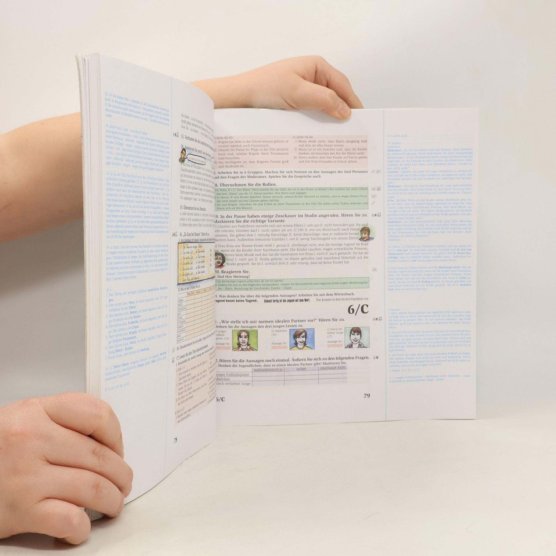 K základnímu obsahu studentské knihy se v učitelské knize přidává jak komplet testů ke kopírování, tak metodické poznámky ke gramatice, vysvětlivky k slovní zásobě a reáliím. Praktickou součástí publikace je i klíč ke cvičením na rozšířených okrajích.