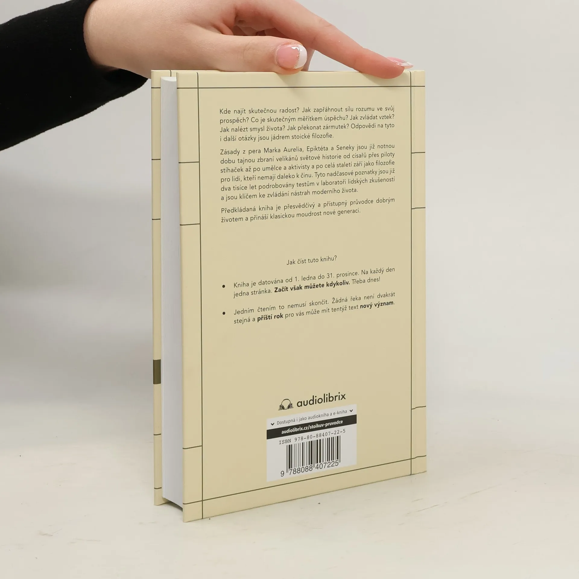 Zamyšlení pro každý den v roce v kontextu stoických myšlenek Marka Aurelia, Epiktéta či Seneky. Texty odpovídají na to, co je skutečné měřítko úspěchu, jak ovládnout negativní emoce, jak správně užít rozum, jak nalézt smysl života a překonat smutek.