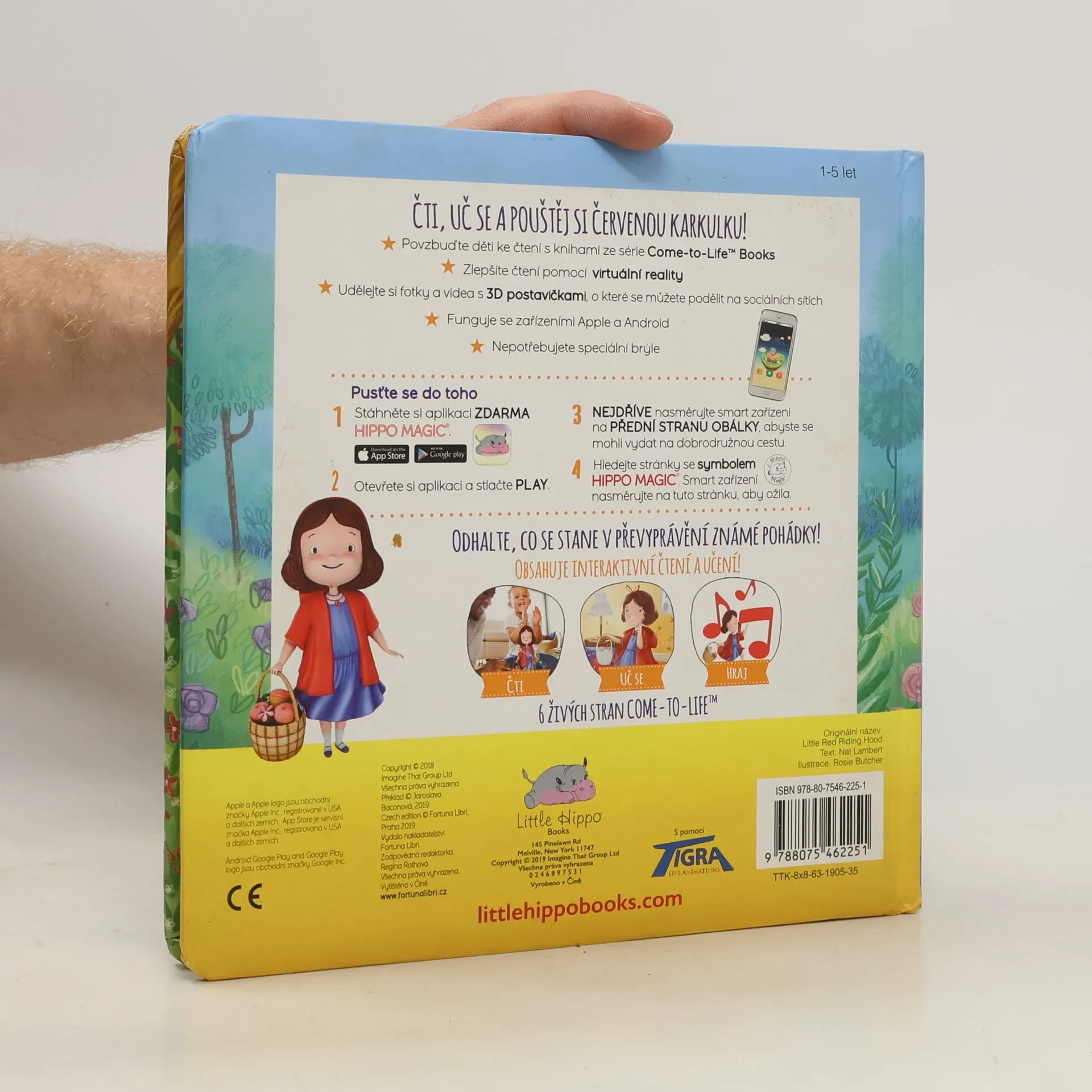 Klasika v interaktivní podobě pro děti i rodiče Klasická pohádka obohacená o virtuální realitu. Povzbuďte děti ke čtení knih. Udělejte si fotky a videa s 3D postavičkami, o které se můžete podělit na sociálních sítích. Nepotřebujete žádné speciální brýle! Postačí vám pouze mobilní telefon a naše aplikace FREE HIPPO MAGIC, která je zdarma ke stažení. Aplikace funguje se zařízeními Apple a Android. Interaktivní knížka funguje ve čtyřech snadných krocích: 1. Stáhněte si aplikaci FREE HIPPO MAGIC 2. Otevřete si aplikaci a stlačte PLAY 3. Nejdříve nasměrujte zařízení na přední stranu obálky 4. Hledejte stránky se symbolem HIPPO MAGIC. Zařízení nasměrujte na tuto stránku, aby ožila