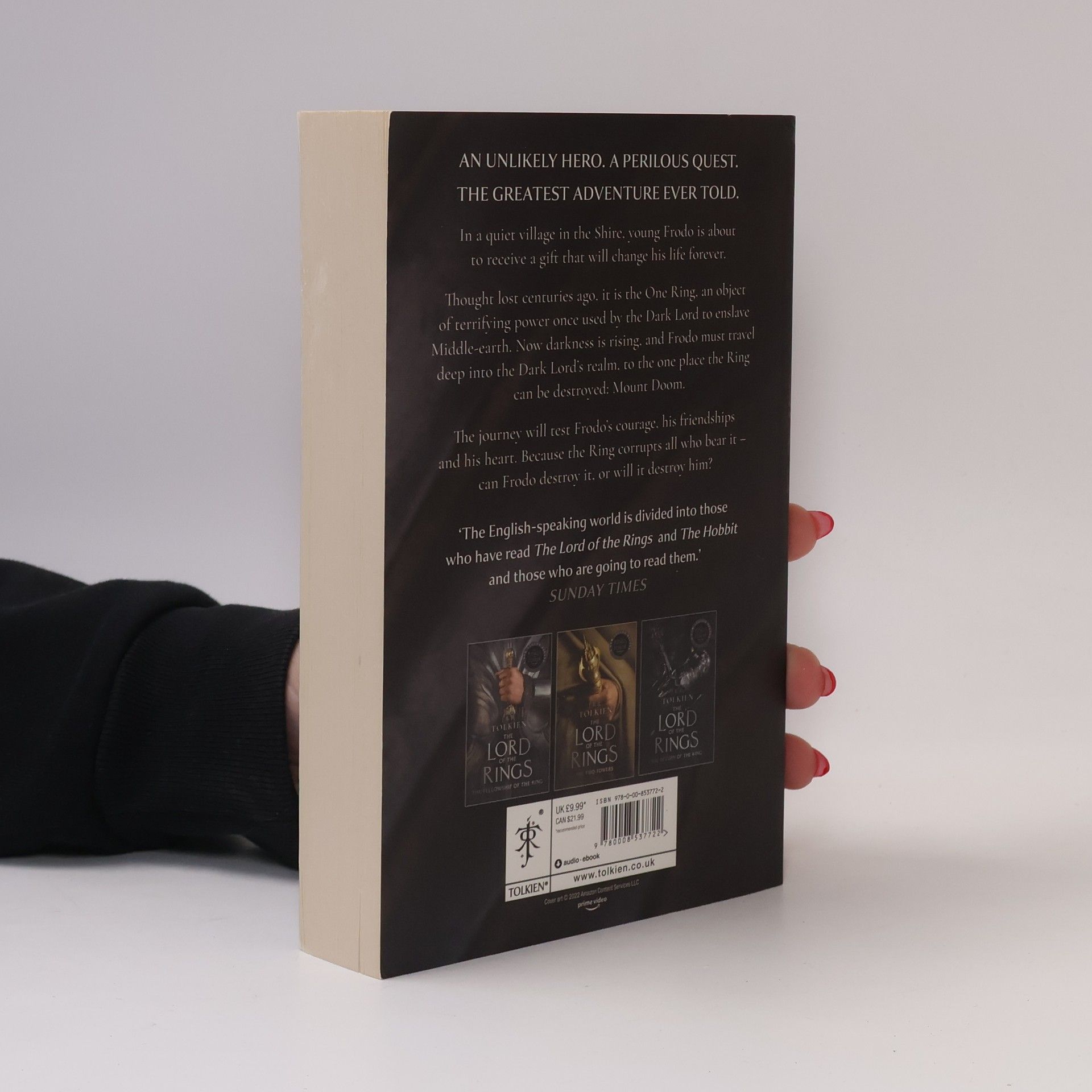 Begin your journey into Middle-earth. A New Legend Begins on Prime Video, in The Lord of the Rings: The Rings of Power. The first part of J. R. R. Tolkien's epic adventure THE LORD OF THE RINGS. In a quiet village in the Shire, young Frodo is about to receive a gift that will change his life forever. Thought lost centuries ago, it is the One Ring, an object of terrifying power once used by the Dark Lord to enslave Middle-earth. Now darkness is rising, and Frodo must travel deep into the Dark Lord's realm, to the one place the Ring can be destroyed: Mount Doom. The journey will test Frodo's courage, his friendships and his heart. Because the ring corrupts all who bear it - can Frodo destroy it, or will it destroy him?