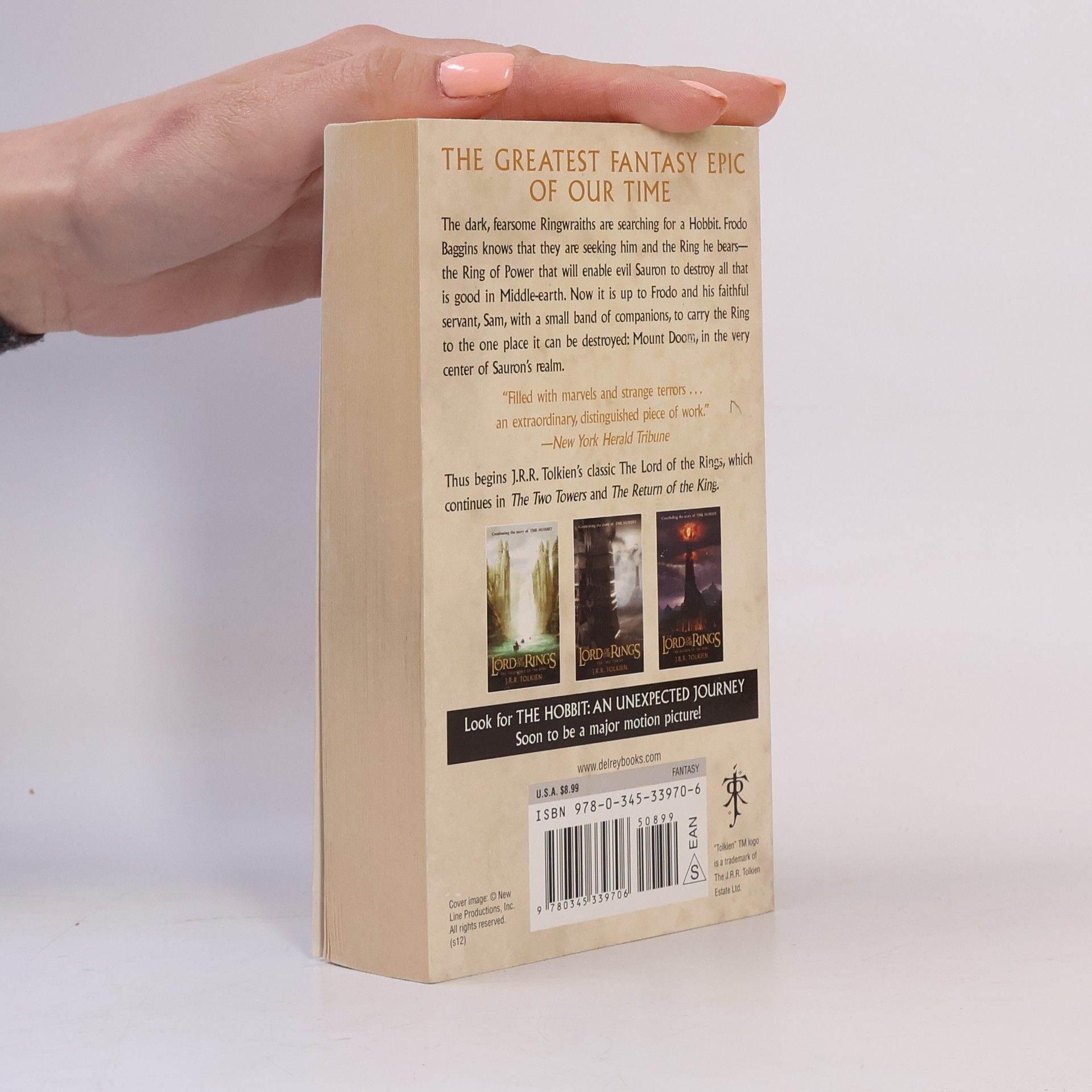 The opening novel of The Lord of the Rings—the greatest fantasy epic of all time—which continues in The Two Towers and The Return of the King. Nominated as one of America’s best-loved novels by PBS’s The Great American Read The dark, fearsome Ringwraiths are searching for a Hobbit. Frodo Baggins knows that they are seeking him and the Ring he bears—the Ring of Power that will enable evil Sauron to destroy all that is good in Middle-earth. Now it is up to Frodo and his faithful servant, Sam, with a small band of companions, to carry the Ring to the one place it can be destroyed: Mount Doom, in the very center of Sauron’s realm.
