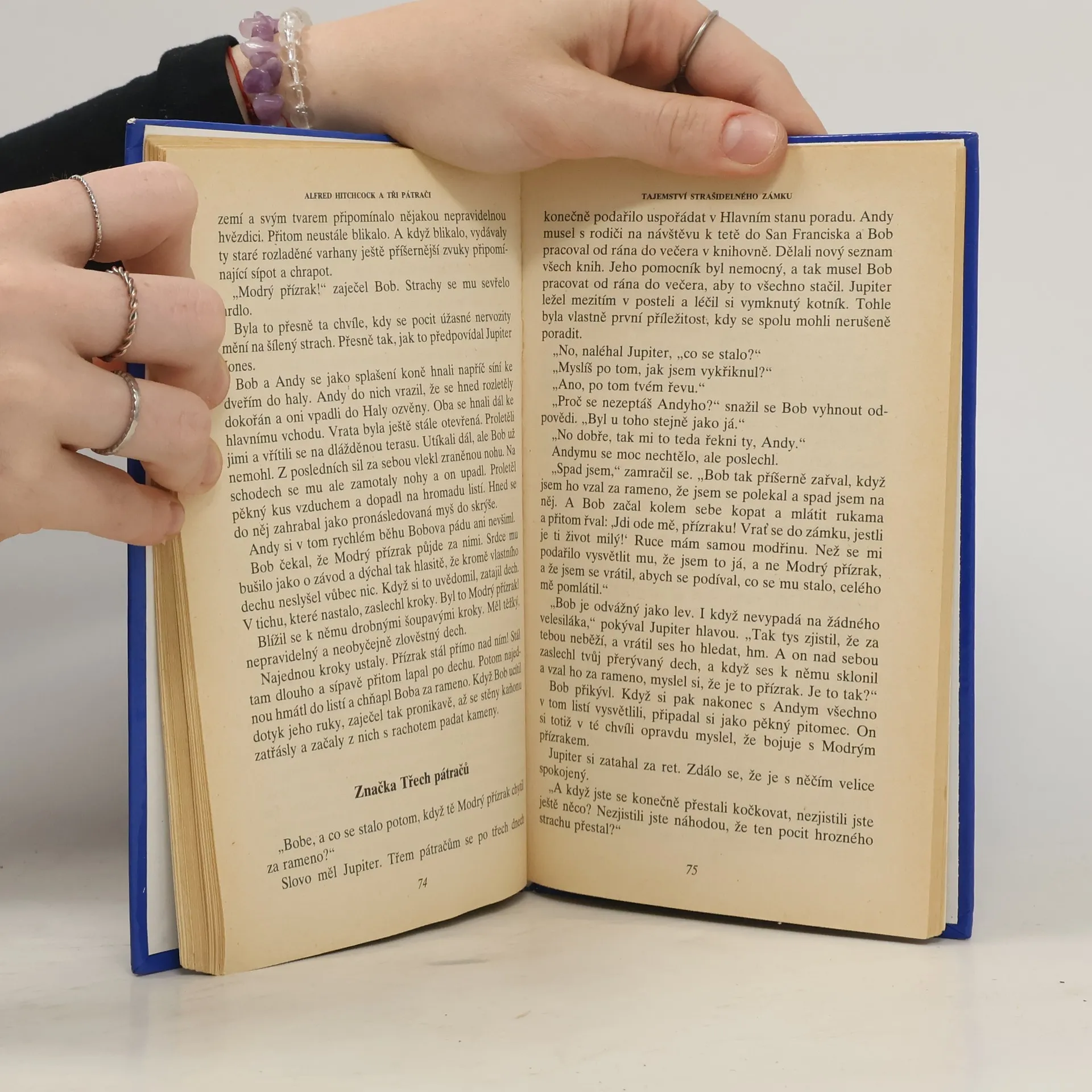 Všichni tři chlapci bydlí v Rocky Beach, malém městečku na pobřeží Tichého oceánu, vzdáleném jenom několik kilomwetrů od Hollywoodu. Bob Andrews je malý, ale obratný mládenec, přemýšlivý, hloubavý typ, i když má sklony k dobrodružství. Petr Crenshaw je poměrně vysoký a svalnatý a o Jupiterovi Jonesovi by se dalo říci, že je tlustý a trochu nemotorný. Už jako malému se mu kvůli tomu ostatní smáli. Proto vždy chtěl, aby ho lidé brali vážně a tak jen co se naučil číst, četl všechno co se mu dostalo do rukou a nejvíc ho zaujaly knihy o kriminalistice a psychologii. A protože měl dobrou paměť, zapamatoval si téměř všechno co přečetl a moc rád o všem diskutoval, takže i učitelé ve škole pokládali za moudřejší nepouštět se s ním do debaty o rozličných faktických problémech. Stávalo se jim totiž, že je často usvědčil z omylu. Tito tři podnikavci se nabídli najít A. Hitchcockovi strašidelný dům pro jeho nový film. Ve starých novinách se dočetli o Strašidelném zámku a samozřejmě se okamžitě rozhodnou ho navštívit. Velmi rychle zjistí, že přívlastek „strašidelný“ není náhodný a s řáděním strašidla se setkávají na každém kroku.