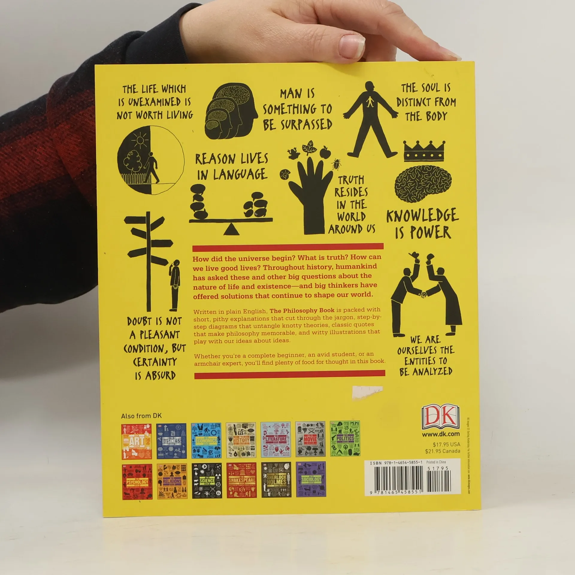How did the universe begin? What is truth? How can we live good lives? Throughout history, humankind has asked these and other big questions about the nature of life and existence - and big thinkers have offered solutions that continue to shape our world. Written in plain English, The Philosophy Book is packed with short, pithy explanations that cut through the jargon, step-by-step diagrams that untangle knotty theories, classic quotes that make philosophy memorable, and witty illustrations that play with our ideas about ideas. Whether you're a complete beginner, an avid student, or an armchair expert, you'll find plenty of food for thought in this book.--COVER