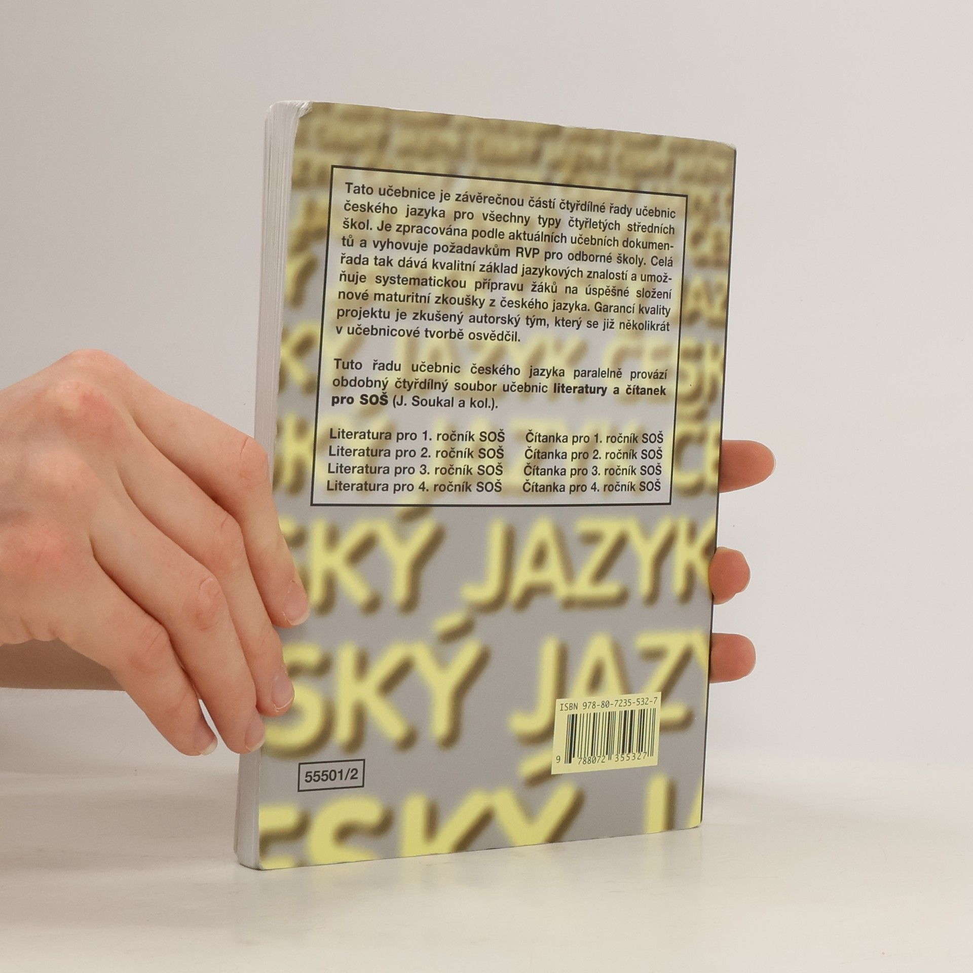 Tato učebnice je závěrečnou částí čtyřdílné řady učebnice českého jazyka pro všechny typy čtyřletých středních škol. Je zpracována podle aktuálních učebních dokumentů a vyhovje požadavkům RVP pro odborné školy.