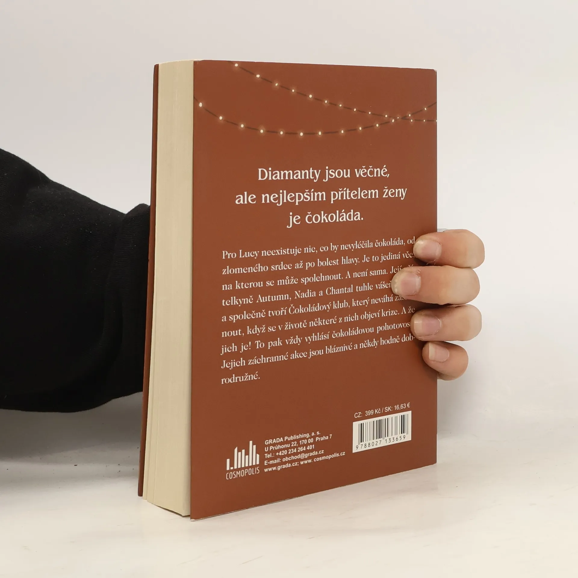 Diamanty jsou věčné, ale nejlepším přítelem ženy je čokoláda. Pro Lucy neexistuje nic, co by nevyléčila čokoláda, od zlomeného srdce až po bolest hlavy. Je to jediná věc, na kterou se může spolehnout. A není sama. Její přítelkyně Autumn, Nadia a Chantal sdílejí její vášeň a společně tvoří Čokoládový klub, který neváhá zasáhnout, když se v životě některé z nich objeví krize. A že jich je! To pak vždy vyhlásí čokoládovou pohotovost. Jejich záchranné akce jsou bláznivé a někdy hodně dobrodružné. Lucy překročila třicítku a stále hledá tu pravou práci i toho pravého muže. Ani jedno se bohužel neobejde bez nehod. Lékem a útěchou je pro ni čokoláda, ve které se opravdu vyzná. Nadia opustila skvělou práci i rodinu pro lásku, dnes má malého syna a manžela, který propadl hazardu. Je schopná slízat čokoládu i ze synkových sušenek, když na to přijde. Autumn, dívka z vyšších vrstev s příliš citlivým svědomím, ohnivými kudrnami a příšerným vkusem, se stará o drogově závislou mládež, svou vlastní závislost však pečlivě skrývá. Chantal je Američanka se čtyřicítkou na krku, bohatým manželem a nenaplněnou potřebou sexu. Její náhodní partneři způsobí řadu problémů, z nichž jí pomohou kamarádky a čokoláda.