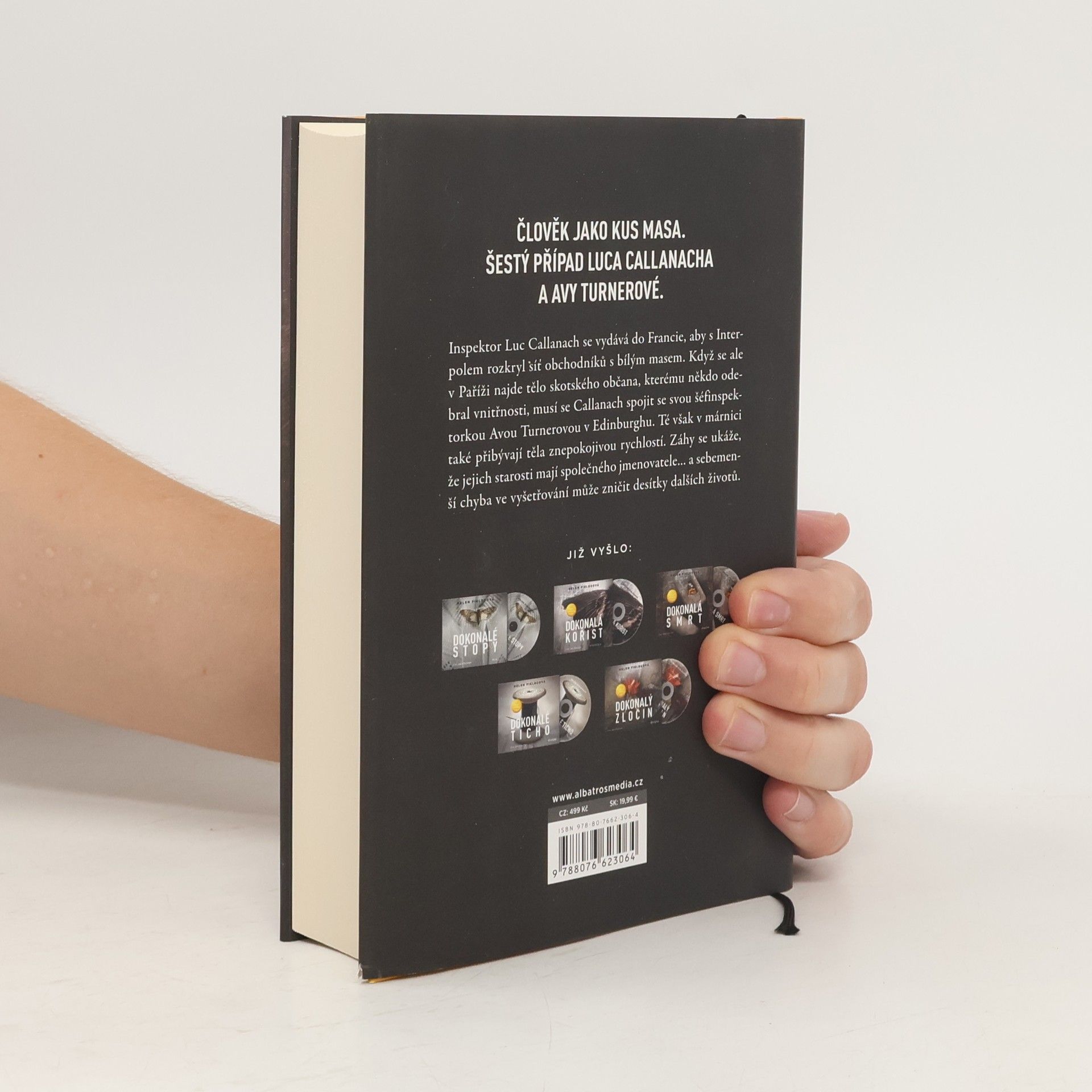 Člověk jako kus masa. Šestý případ Luca Callanacha a Avy Turnerové. Inspektor Luc Callanach se vydává do Francie, aby s Interpolem rozkryl síť obchodníků s bílým masem. Když se ale v Paříži najde tělo skotského občana, kterému někdo odebral vnitřnosti, musí se Callanach spojit se svou šéfinspektorkou Avou Turnerovou v Edinburghu. Té však v márnici také přibývají těla znepokojivou rychlostí. Záhy se ukáže, že jejich starosti mají společného jmenovatele… a sebemenší chyba ve vyšetřování může zničit desítky dalších životů. „Dokonalá tma je dalším napínavým thrillerem z pera vynikající autorky. Tento nefalšovaně temný i dojímavý příběh nebudete moct odložit.“ Isabel Ashdown, bestsellerová autorka thrillerů Little Sister a Beautiful Liars „U čtení Dokonalé tmy ani nedýcháte. Tento podmanivý a odvážný díl nemá žádná hluchá místa, je výborně promyšlený a spočívá na silných faktografických základech.“ Essie Fox, autorka románů The Last Days of Leda Grey, The Goddess of the Thief