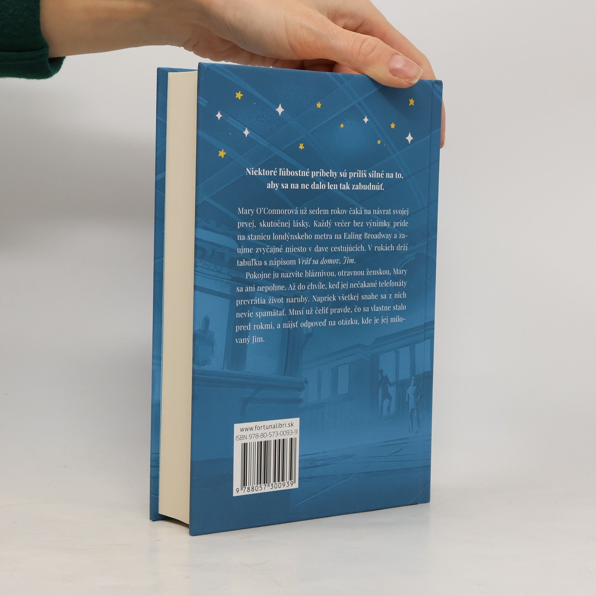 Niektoré ľúbostné príbehy sú príliš veľké na to, aby sa na ne dalo len tak zabudnúť. Mary OʼConnorová už sedem rokov čaká na návrat svojej prvej, skutočnej lásky. Každý večer bez výnimky príde na železničnú stanicu na Ealing Broadway a zaujme zvyčajné miesto v dave cestujúcich. V rukách drží tabuľku s nápisom Vráť sa domov, Jim. Pokojne ju nazvite bláznivou, otravnou ženskou, Mary sa ani nepohne. Až do chvíle, keď jej nečakané telefonáty prevrátia život naruby. Napriek všetkej snahe sa z nich nevie spamätať. Musí už čeliť pravde, čo sa vlastne stalo pred rokmi, a nájsť odpoveď na otázku, kde je jej milovaný Jim.