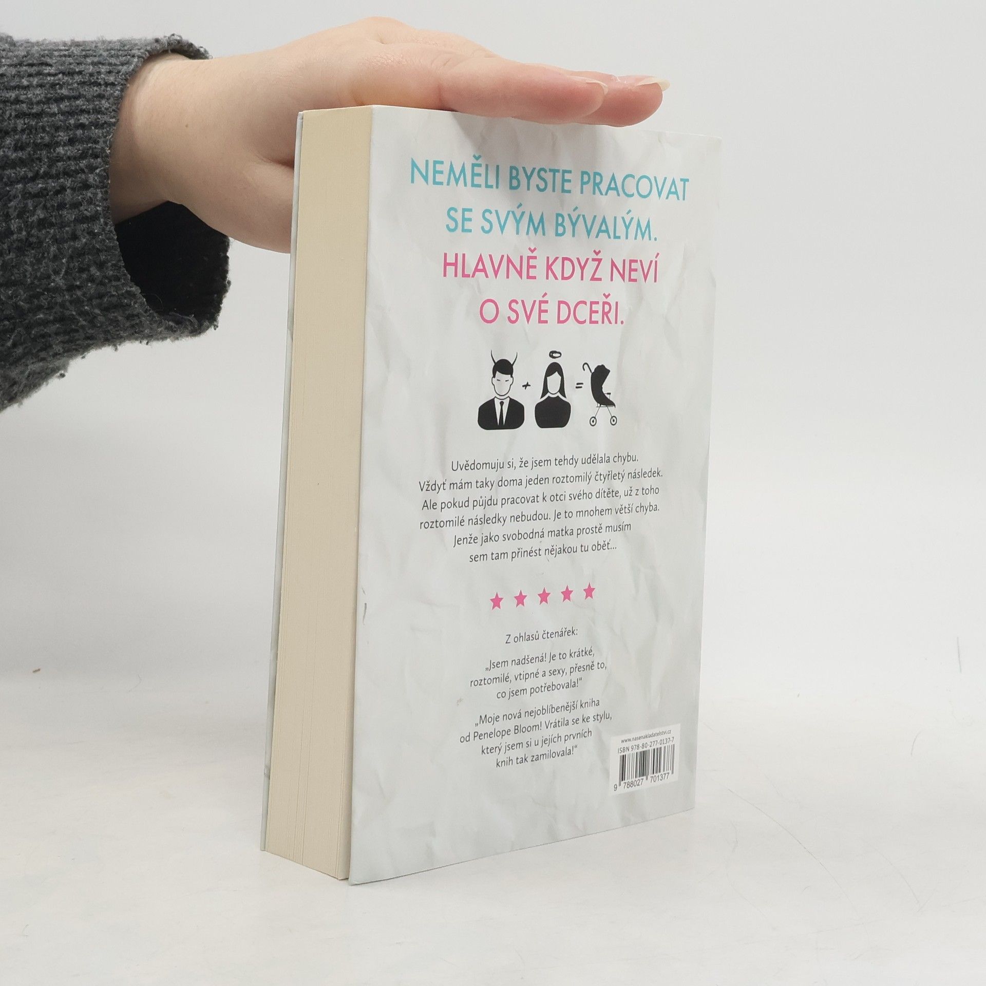 Znáte ten instinkt, který vás nutí utíkat, když se blíží něco děsivého? Jo. No, tak já ho evidentně přehlédla. Protože Damon Rose přišel a místo abych utekla, tak jsem otěhotněla. Ale to bylo před pěti lety a o dítěti jsem tomu-jehož-jméno-nesmíme-vyslovit nikdy neřekla. Taky jsem právě udělala něco velice hloupého. Znovu. Požádala jsem o práci v Damonově agentuře. Jo, pořád je neskutečně nádherný s ledovým pohledem, který říká „potřebuju mít ten fax na stole. Hned vedle tvých rukou.“ Pořád si myslí, že by se svět před ním měl sklonit a líbat mu nohy. To se nestane, šéfíku. Nepokleknu. Neomluvím se. A rozhodně ti neřeknu pravdu o naší dceři. Ani kdybys vyměnil ten zásobník na led, kterým maskuješ svoje srdce.