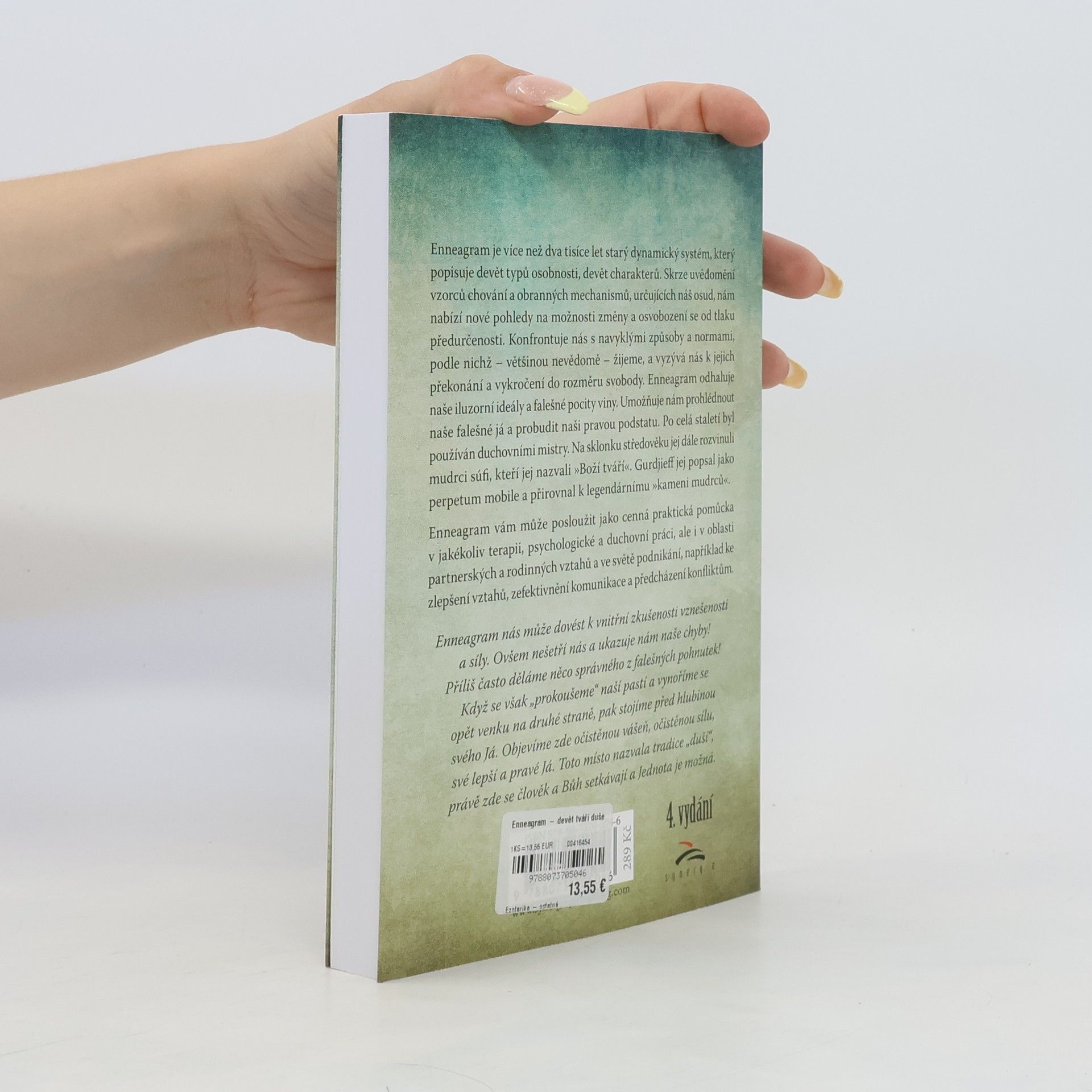 Enneagram, více než dva tisíce let starý dynamický systém, popisuje devět typů osobnosti, devět charakterů. Po celá staletí byl používán duchovními mistry. Enneagram vám může posloužit jako cenná praktická pomůcka v jakékoliv terapii, psychologické a duchovní práci, ale i v oblasti partnerských a rodinných vztahů a ve světě podnikání, například ke zlepšení vztahů, zefektivnění komunikace a předcházení konfliktům. Enneagram nás může vést k vnitřní zkušenosti vznešenosti a síly. Ovšem nešetří nás a ukazuje nám naše chyby! Příliš často děláme něco správného z falešných pohnutek! Když se však “prokoušeme naší pastí a vynoříme se opět venku na druhé straně, pak stojíme před hlubinou svého Já. Objevíme zde očistěnou vášeň, očistěnou sílu, své lepší a pravé Já. Toto místo nazvala tradice “duší, právě zde se člověk a Bůh setkávají, Jednota je možná a náboženství neznamená jen slova, výzvy, normy, dogmata, rituály a návštěvy bohoslužeb, nýbrž pravou zkušenost setkání. Rád předávám Enneagram dál, neboť jsem mohl na vlastní oči vidět, jak se lidé v tomto smyslu změnili. – Richard Rohr