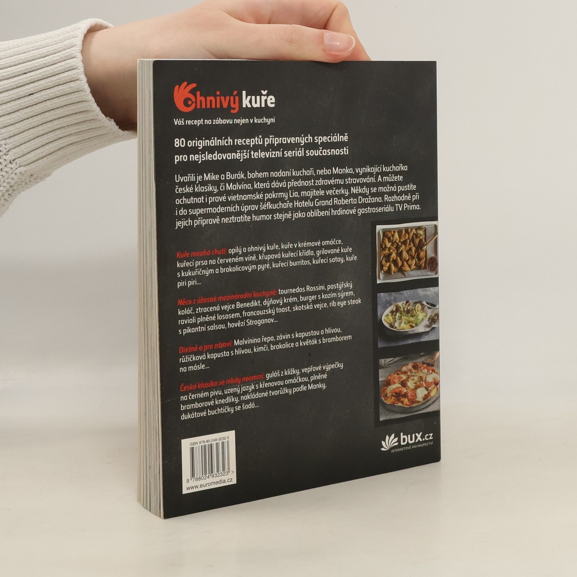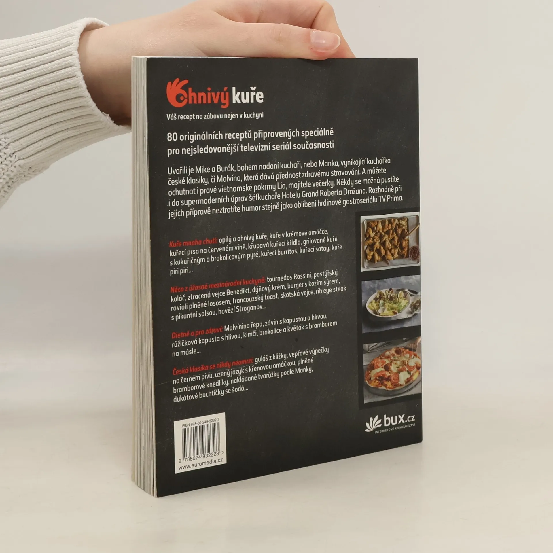 Vyberte si z 80 receptů české a mezinárodní kuchyně, které v nejsledovanějším seriálu současnosti, vysílaném na TV Prima, vařili jeho protagonisté Mike a Burák, bohem nadaní kuchaři, nebo Manka, vynikající kuchařka české klasiky, či Malvína, která dává přednost zdravému stravování. A můžete ochutnat i pravé vietnamské závitky či polévky Lia, majitele večerky. Někdy se možná pustíte i do úprav šéfkuchaře Roberta Dražana, i když jsou náročnější. Rozhodně při jejich přípravě neztratíte humor stejně jako naši hrdinové.