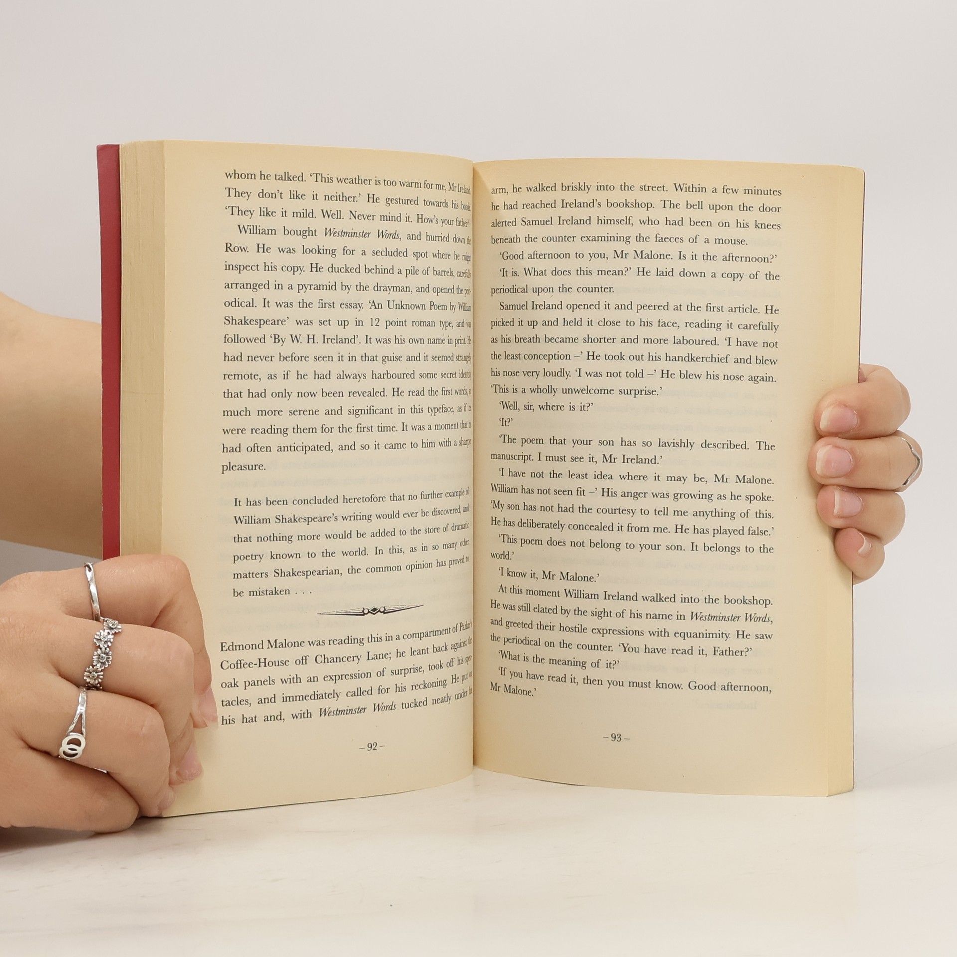 Mary Lamb is confined by the restrictions of domesticity: her father is losing his mind, her mother watchful and hostile. It is no surprise when Mary falls for the bookseller's son, antiquarian William Ireland, from whom Charles has purchased a book.
