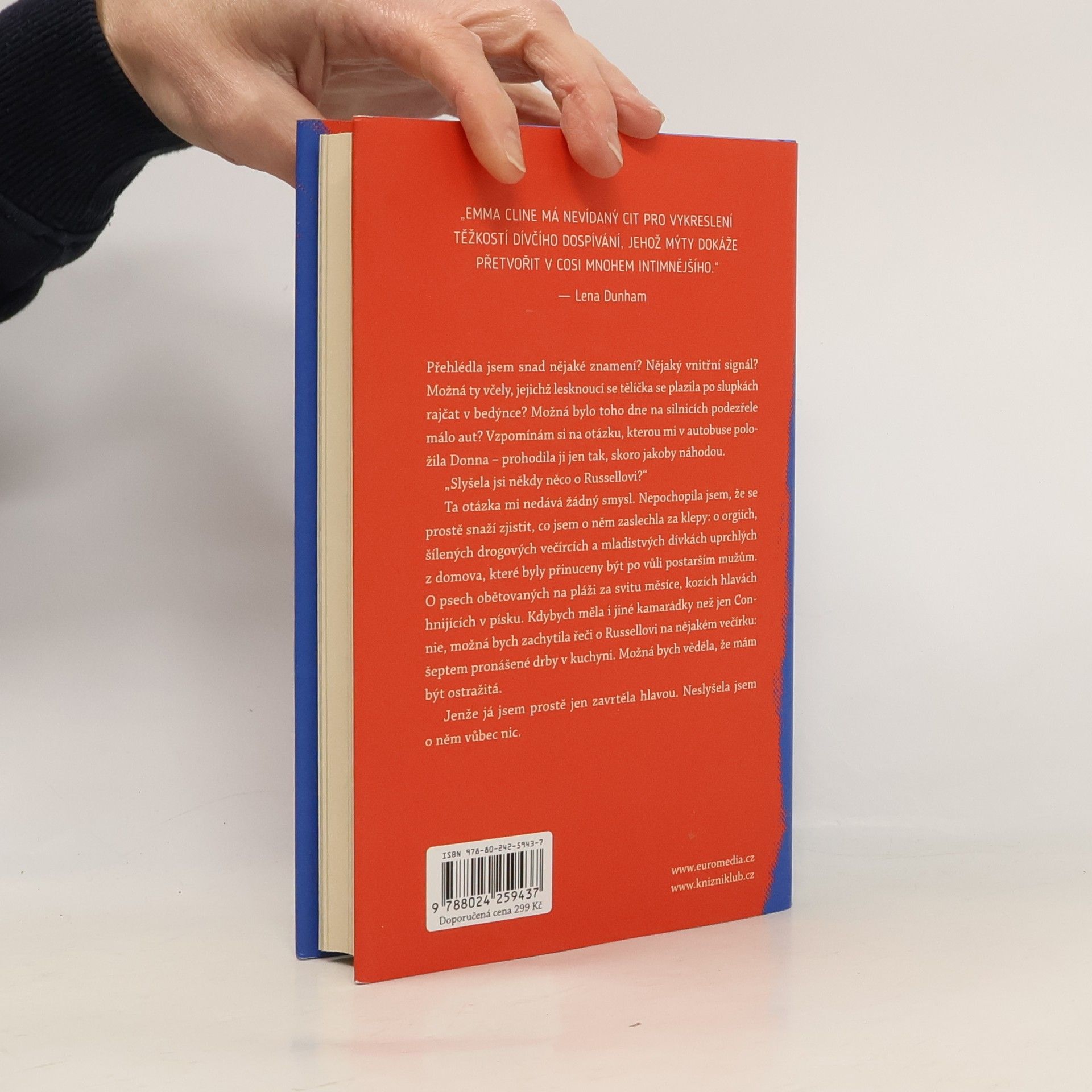 Evie Boydová toho v životě prožila hodně, ale vzpomínky na konec divokých 60. let by nejraději pohřbila hluboko v sobě. Jednoho dne však narazí na mladý pár, jenž jí všechno připomene: čas, kdy jí bylo sladkých patnáct, i chvíli, kdy poprvé spatřila dívky z Rodiny. Evie se doma nudí a brzy zjistí, že dny strávené na ranči, kde žije komunita vedená charismatickým Russellem, jenž vyznává volnou lásku a usiluje o smlouvu na svou první desku, ji naplňují víc než maloměstské hodnoty její matky. Postupem doby nicméně zjistí, že věci se nemají tak, jak se na první pohled zdálo. Když nahrávání padne, Russell se svou Rodinou nachystá strašnou odplatu. Evie se zmítá mezi láskou k Suzanne a zdravým rozumem. Jak nakonec dokáže najít cestu ven z roztáčející se spirály násilí, drog a sexu? Literární debut Emmy Cline je thrillerem inspirovaným osudy komunity Charlese Mansona, jehož chladnokrevně provedené vraždy nevinných lidí na konci éry hippies vyděsily americkou společnost.
