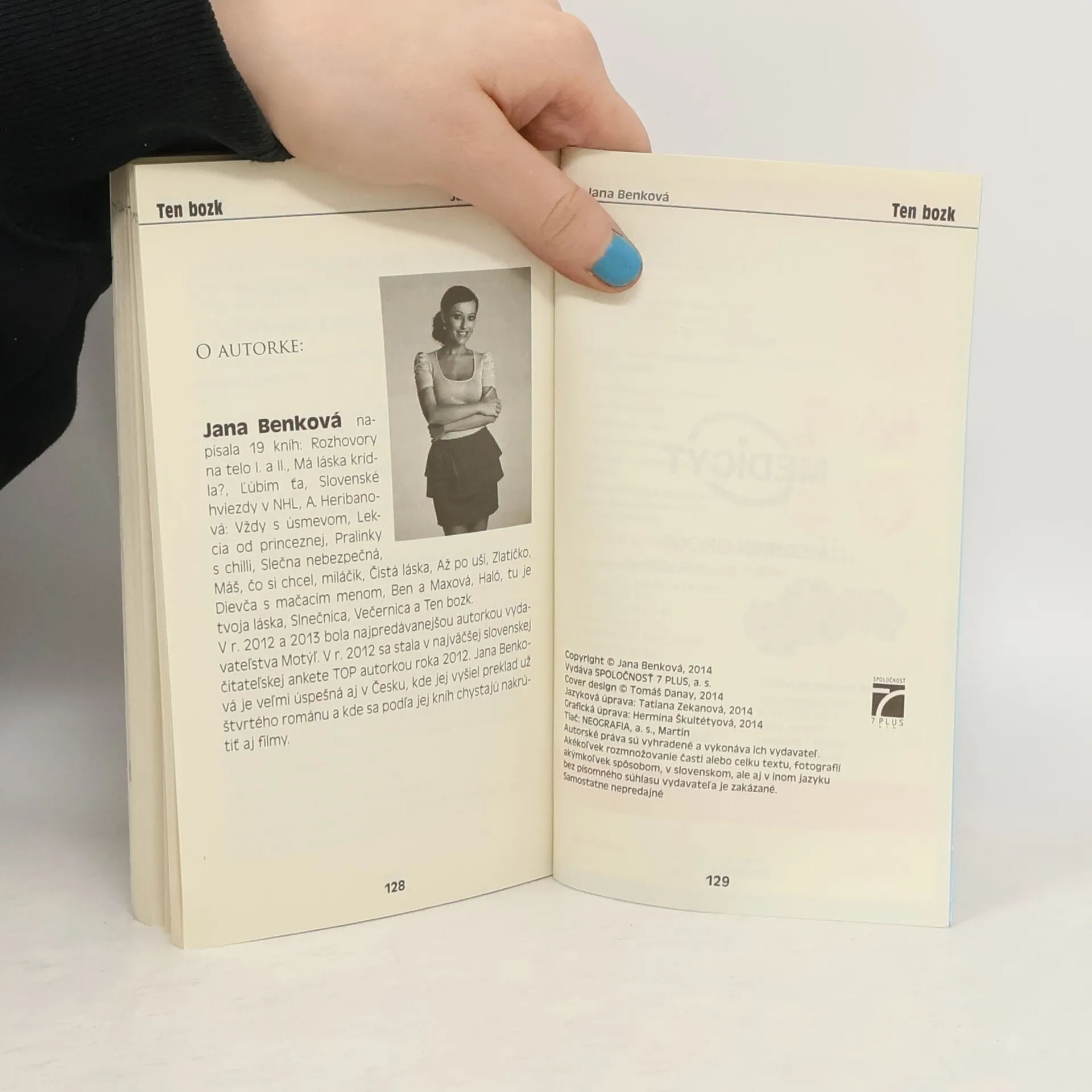 Nová knižka Jany Benkovej TEN BOZK je o tom, že keď stretnete toho pravého, všetko sa dá prekonať. O tom, že všetko v živote časom slabne, len skutočná láska nie...Tento sexi román k vašej víkendovej káve vychádza v edícii EMMA Love a okrem autorkiných už typických iskrivých dialógov a dynamického deja prináša aj posolstvo všetkým dievčatám a ženám – informáciu o novej vyšetrovacej metóde LBC cytológii, ktorá je taká progresívna, že môže zachrániť váš život. Aj preto sa román okrem pribalenia k prestížnemu lifestylovému časopisu objaví aj v ambulanciách mnohých gynekológov a dostane ho ako darček každá žena, ktorá príde na preventívnu prehliadku.Je to už 19. kniha spisovateľky, ktorá je úspešná na Slovensku, ale aj v Českej republike