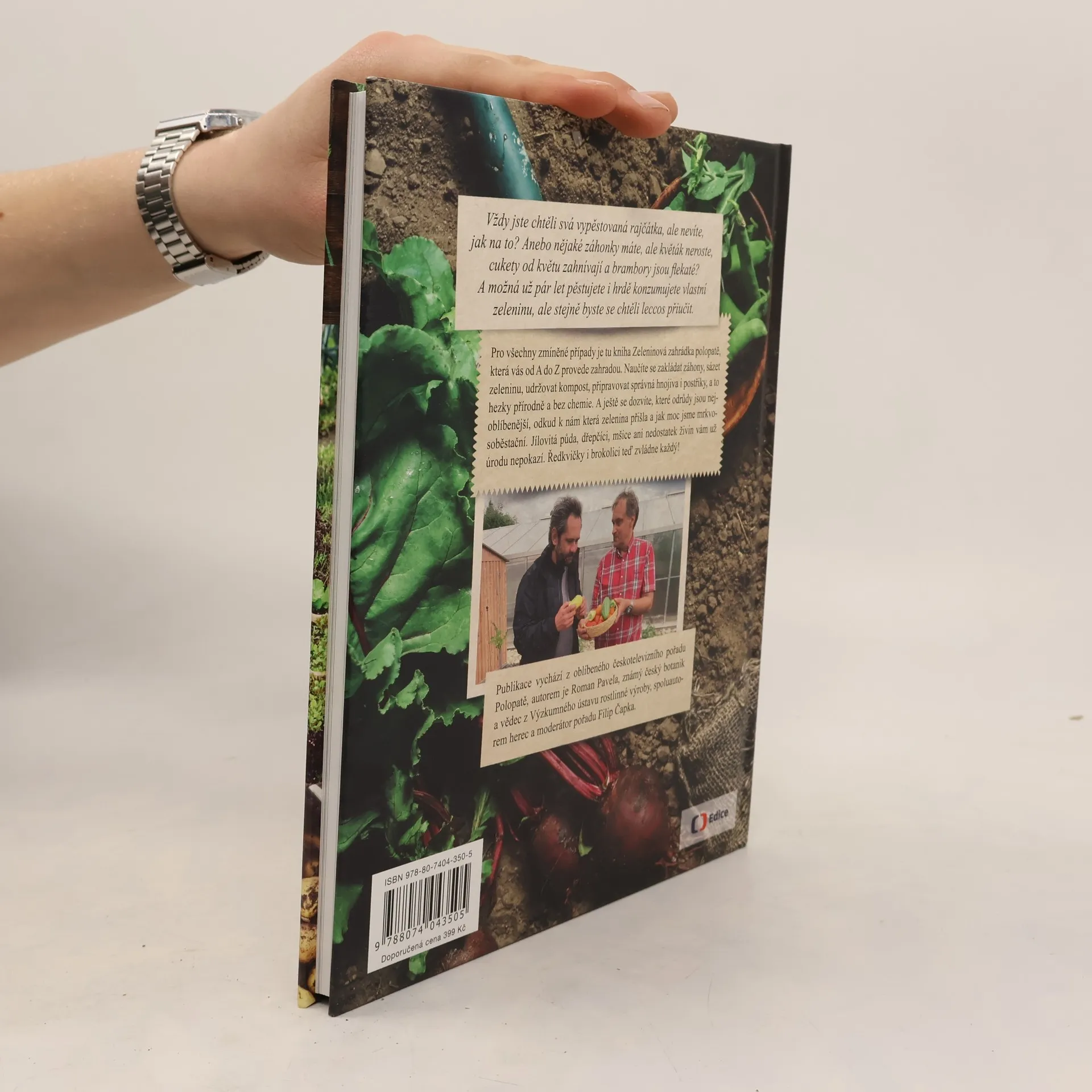Napsal Roman Pavela s předmluvou Filipa Čapky. Vždy jste chtěli svá vypěstovaná rajčata, ale nevíte, jak na to? Anebo nějaké záhonky máte, ale květák neroste, cukety od květu zahnívají a brambory jsou flekaté? A možná už pár let pěstujete i hrdě konzumujete vlastní zeleninu, ale stejně byste se chtěli leccos přiučit. Pro všechny zmíněné případy je tu kniha Zeleninová zahrádka polopatě, která vás od A do Z provede vším potřebným. Naučíte se zakládat záhony, sázet zeleninu, udržovat kompost, připravovat správná hnojiva i postřiky, a to hezky přírodně a bez chemie. A ještě se dozvíte, které odrůdy jsou nejoblíbenější, odkud k nám která zelenina přišla a třeba jak moc jsme mrkvosoběstační. Jílovitá půda, dřepčíci, mšice ani nedostatek živin vám už úrodu nepokazí. Publikace vychází z oblíbeného pořadu Polopatě, autorem je Roman Pavela, známý český botanik a vědec z Výzkumného ústavu rostlinné výroby, spoluautorem herec a moderátor pořadu Filip Čapka.