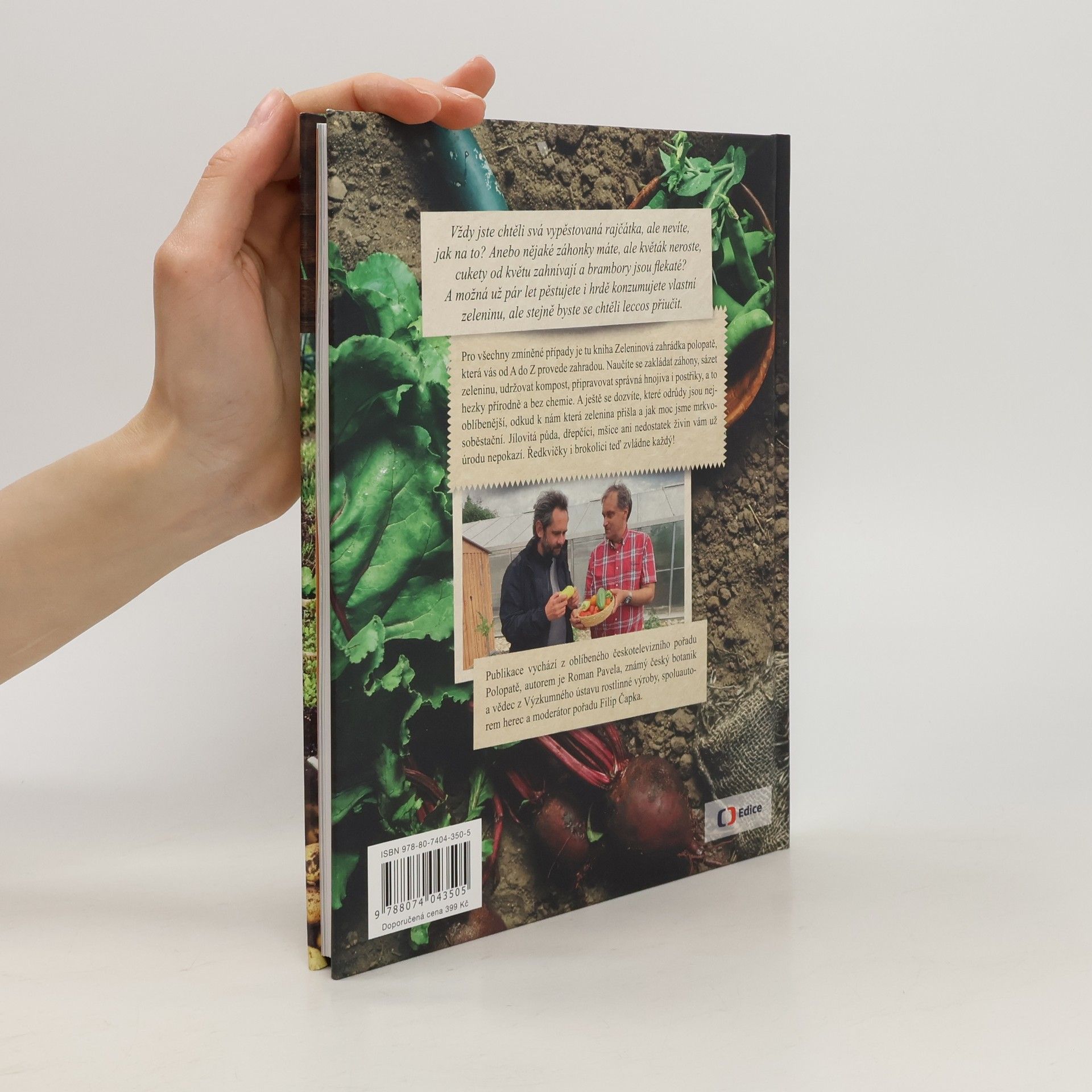 Napsal Roman Pavela s předmluvou Filipa Čapky. Vždy jste chtěli svá vypěstovaná rajčata, ale nevíte, jak na to? Anebo nějaké záhonky máte, ale květák neroste, cukety od květu zahnívají a brambory jsou flekaté? A možná už pár let pěstujete i hrdě konzumujete vlastní zeleninu, ale stejně byste se chtěli leccos přiučit. Pro všechny zmíněné případy je tu kniha Zeleninová zahrádka polopatě, která vás od A do Z provede vším potřebným. Naučíte se zakládat záhony, sázet zeleninu, udržovat kompost, připravovat správná hnojiva i postřiky, a to hezky přírodně a bez chemie. A ještě se dozvíte, které odrůdy jsou nejoblíbenější, odkud k nám která zelenina přišla a třeba jak moc jsme mrkvosoběstační. Jílovitá půda, dřepčíci, mšice ani nedostatek živin vám už úrodu nepokazí. Publikace vychází z oblíbeného pořadu Polopatě, autorem je Roman Pavela, známý český botanik a vědec z Výzkumného ústavu rostlinné výroby, spoluautorem herec a moderátor pořadu Filip Čapka.