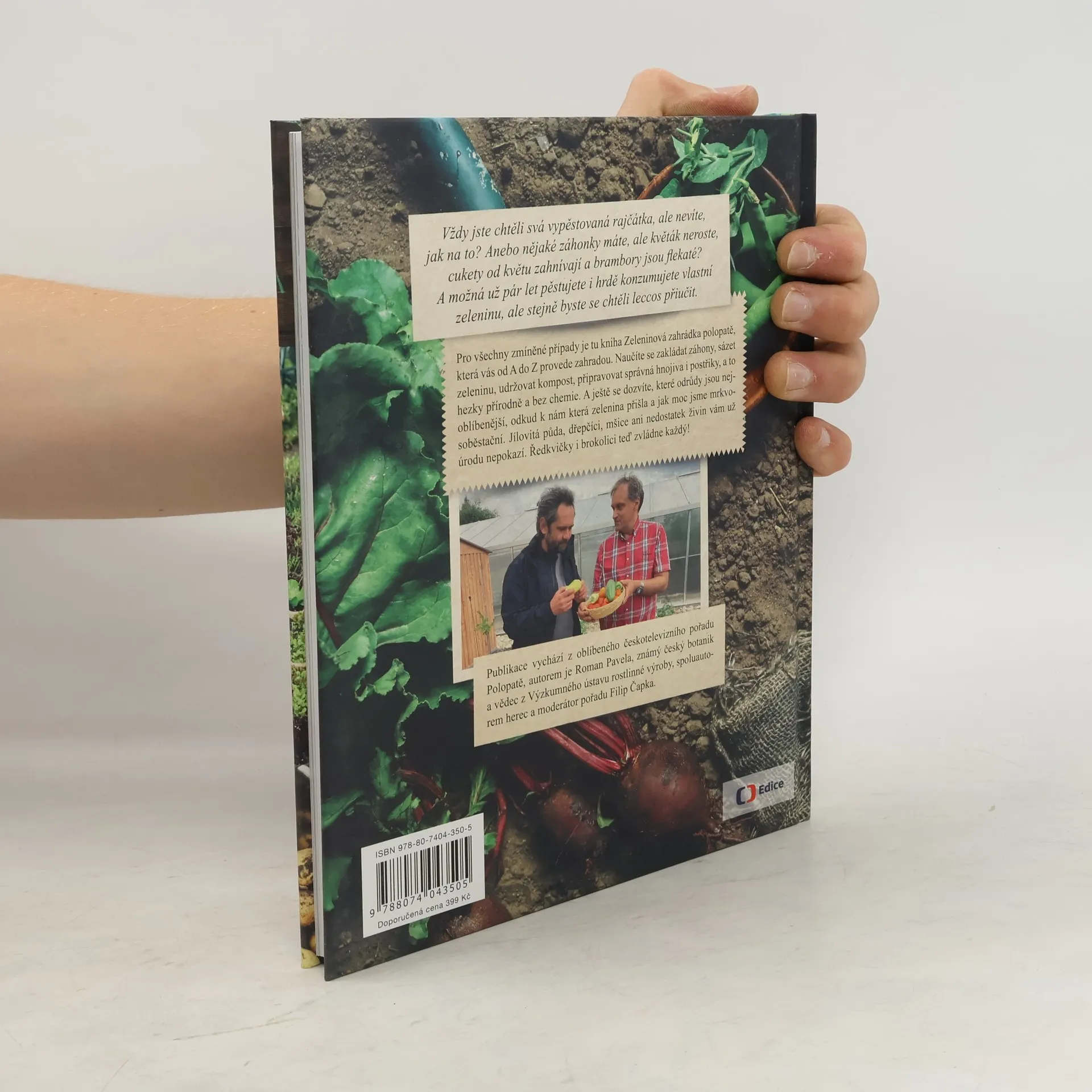 Napsal Roman Pavela s předmluvou Filipa Čapky. Vždy jste chtěli svá vypěstovaná rajčata, ale nevíte, jak na to? Anebo nějaké záhonky máte, ale květák neroste, cukety od květu zahnívají a brambory jsou flekaté? A možná už pár let pěstujete i hrdě konzumujete vlastní zeleninu, ale stejně byste se chtěli leccos přiučit. Pro všechny zmíněné případy je tu kniha Zeleninová zahrádka polopatě, která vás od A do Z provede vším potřebným. Naučíte se zakládat záhony, sázet zeleninu, udržovat kompost, připravovat správná hnojiva i postřiky, a to hezky přírodně a bez chemie. A ještě se dozvíte, které odrůdy jsou nejoblíbenější, odkud k nám která zelenina přišla a třeba jak moc jsme mrkvosoběstační. Jílovitá půda, dřepčíci, mšice ani nedostatek živin vám už úrodu nepokazí. Publikace vychází z oblíbeného pořadu Polopatě, autorem je Roman Pavela, známý český botanik a vědec z Výzkumného ústavu rostlinné výroby, spoluautorem herec a moderátor pořadu Filip Čapka.