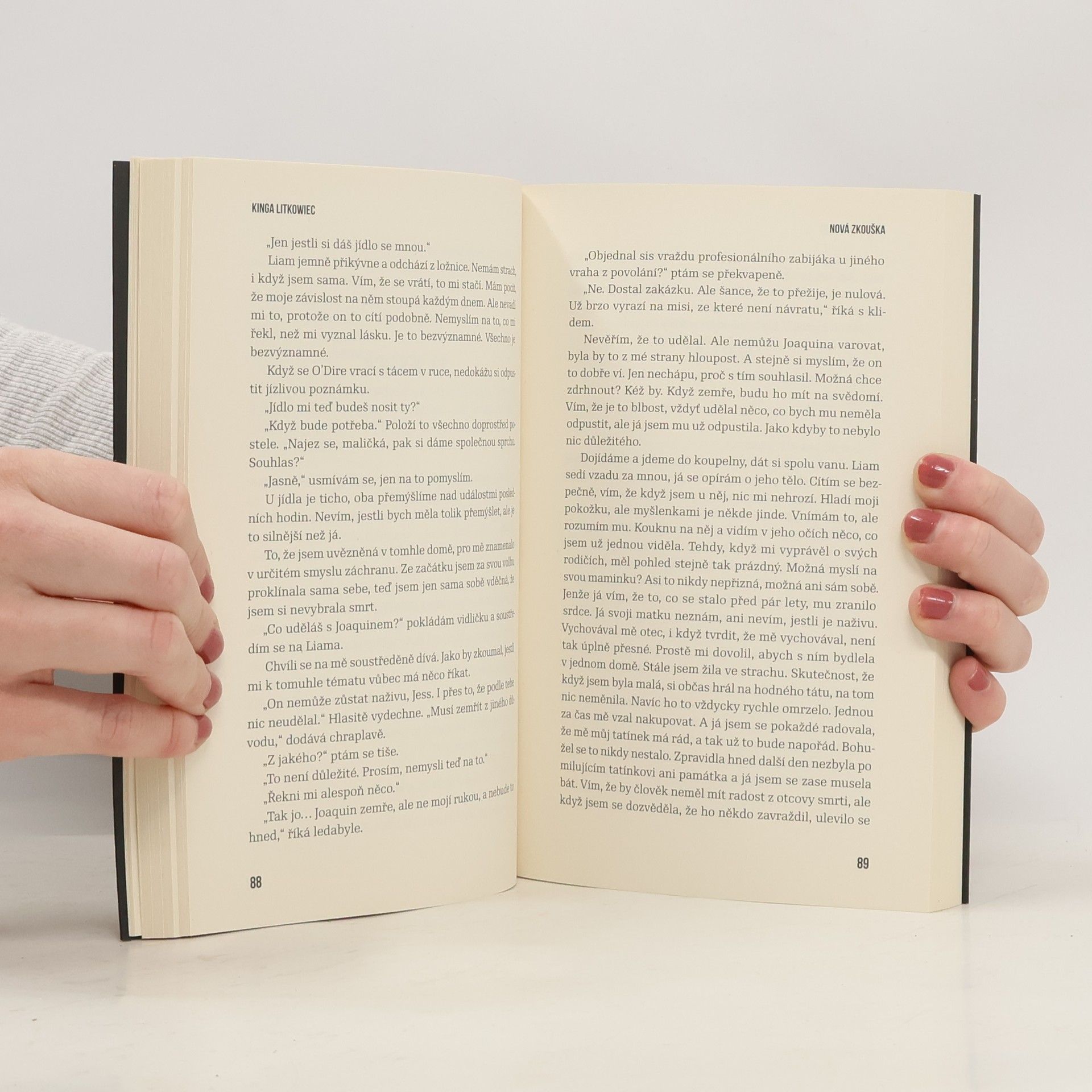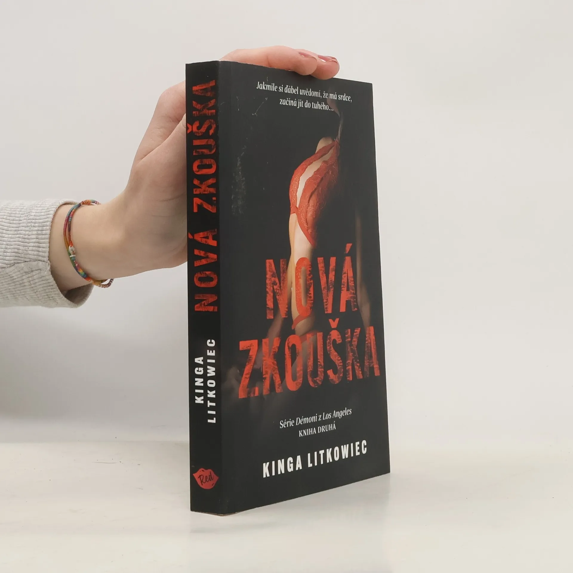 Každý člověk má srdce, ale ne každý s ním umí správně zacházet. Jessica Turner se pomalu sžívá se situací, do které se dostala. Vzniká otázka, jestli je to opravdu tak děsivý vztah, který se dá vydržet jen s největším sebezapřením? Skutečně Jessica jen plní příkazy svého trýznitele, aby ji už konečně propustil? Dohoda, kterou mladá žena uzavřela s ďáblem v lidském těle, získává ze dne na den jinou podobu. Zjišťuje, že to, co pro ni bylo ze začátku nepřijatelné, najednou není tak děsivé, a celá tato brutální erotická hra se jí začíná líbit. Jenže proměnou neprochází jen Jessica, ale i její trýznitel. Liam O´Dire se dostává do situace, které se chtěl za každou cenu vyhnout. Díky mladé ženě ďábel opět objevil své srdce… A tak dvojice pokračuje ve hře, ale už s jinými pravidly, a také s dalšími postavami, které se do ní zapojují. Objevují se noví hráči, kteří nechtějí hrát fair play. Touží po tom, co vlastní Liam… Nová zkouška je pokračování erotického románu Kingy Litkowiec Cizí dluh“, který vyšel v r. 2020. Druhý díl série Démony Los Angeles ukazuje vztah obou hrdinů z úplně jiné perspektivy. Je to kniha akční, ale zároveň velmi smyslná, plná vášně a drsné erotiky.