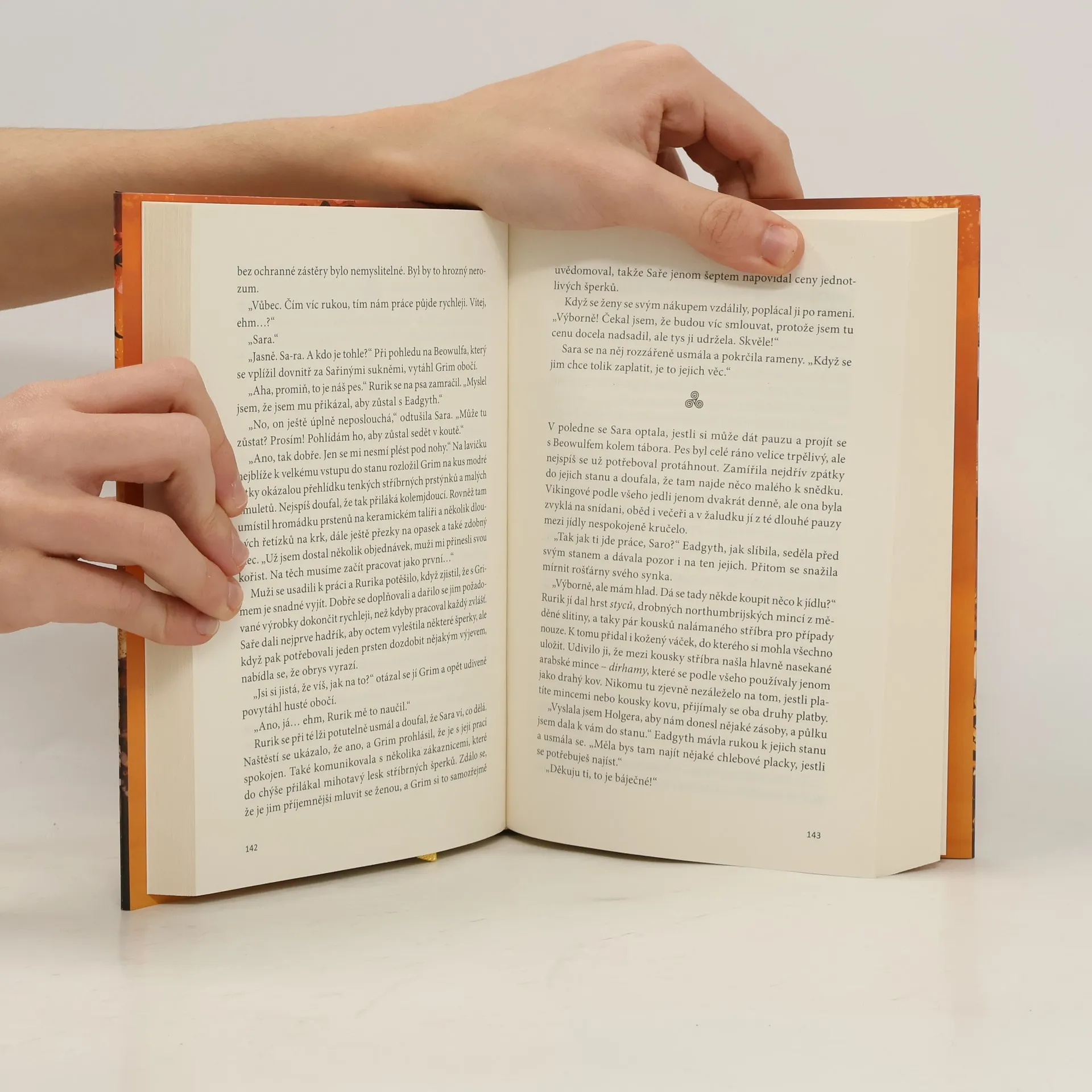 Když se návrhářka šperků Sara Mattssonová řízne na archeologických vykopávkách o čepel vikinského nože, zčistajasna se ocitne v devátém století. S tím se ovšem smíří velice rychle, protože cestování časem pro ni není žádná novinka. Když o kouzelný nůž přijde – tedy i o svou jedinou šanci, jak se dostat zpátky domů – sice si dobře uvědomuje nebezpečí, které jí hrozí, ale vnímá to také jako životní příležitost. Kde jinde by se mohla pro vlastní tvorbu inspirovat pravými vikinskými a anglosaskými šperky než mezi skutečnými Vikingy? Naneštěstí tím prvním, na koho Sara v minulosti narazí, není nikdo jiný než Rurik Eskilsson, stříbrotepec, který už má s cestami časem také zkušenosti. Souhlasí, že s ním Sara může pokračovat do Jorviku, a společně se vydají na cestu, která je ovšem ještě mnohem nebezpečnější. Nicméně osud měl dobrý důvod, proč tyto dvě duše svedl dohromady…
