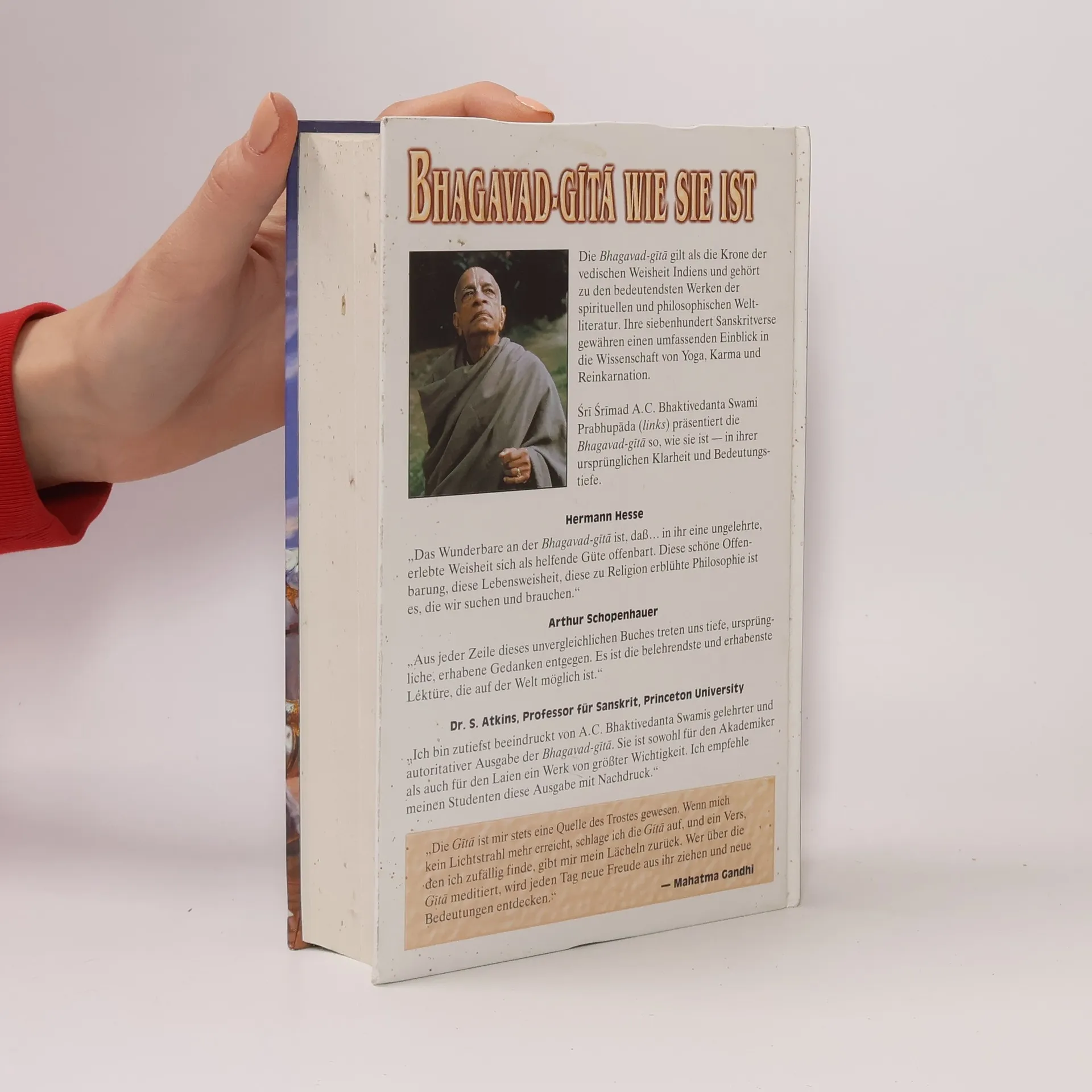 Die "Bhagavad-gita" gilt als die Krone der vedischen Weisheit Indiens und gehört zu den bedeutendsten Werken der spirituellen und philosophischen Weltliteratur. Ihre siebenhundert Sanskritverse gewähren einen umfassenden Einblick in die Wissenschaft von Yoga, Karma und Reinkarnation.§§Sri Srimad A.C. Bhaktivedanta Swami Prabhupada präsentiert die "Bhagavad-gita" so, wie sie ist - in ihrer ursprünglichen Klarheit und Bedeutungstiefe.