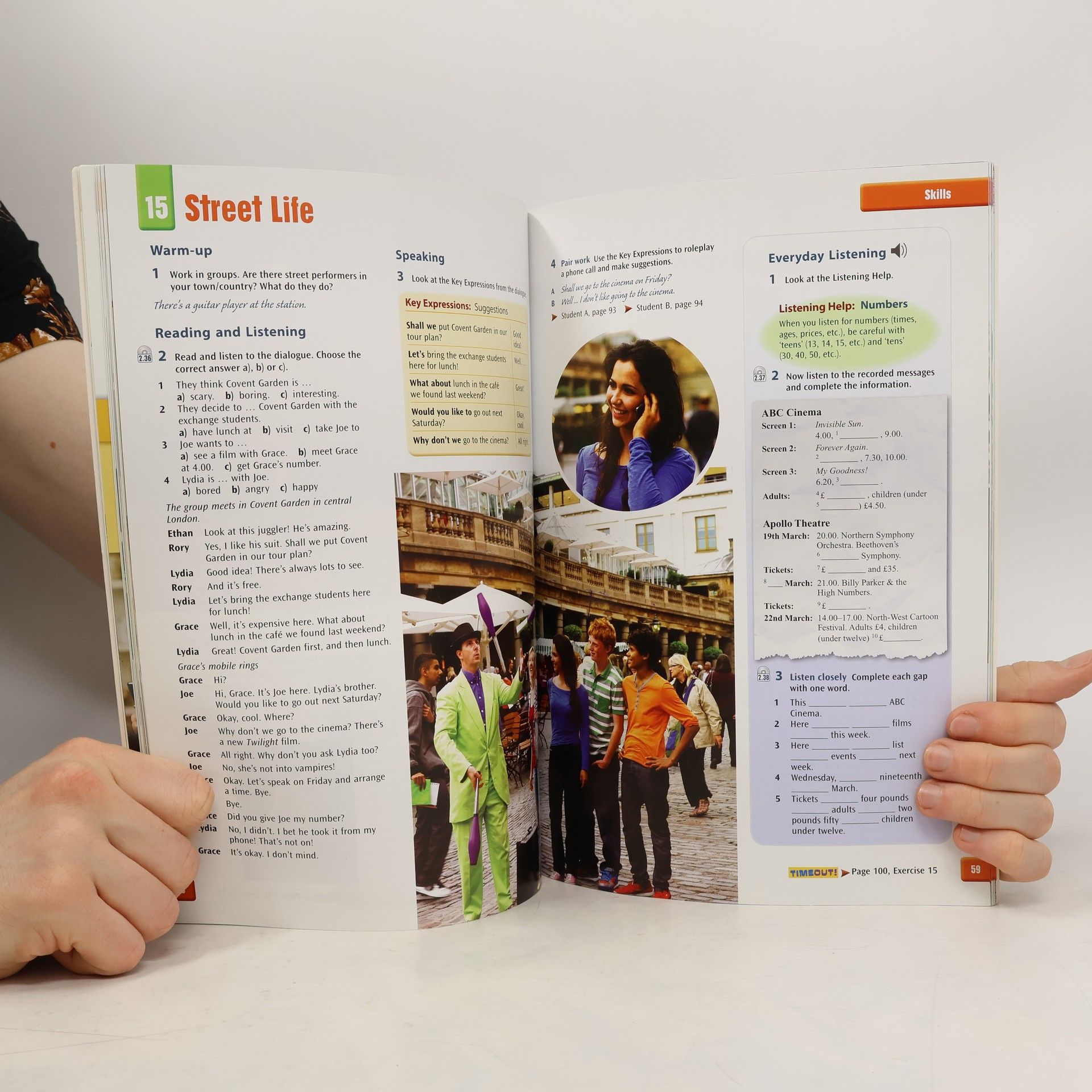 Themes are: related to students' own world (friends, shopping, films, neighbours, holidays, sport) cross-curricular (science and technology, history) develop citizenship education (belonging and identity, diversity, awareness of disability) about other cultures around the world (lifestyles, charity concerts, technology) Organisation: Get Readypage introduces topics first lessonpresents grammar through reading texts and practice second lessondevelops reading, presents vocabulary and practises speaking third lessondevelops the story with a focus on speaking and listening Across Cultureslessons with reading, speaking project work Your Challenge writing tasks and Understanding Grammarspots the end of every module has a language check and learner development spot Fact or Fictiontexts extend students' language by deciding whether information is true or false *Time Outmagazine with fun activities like puzzles, games and reading for pleasure. Picture Dictionary