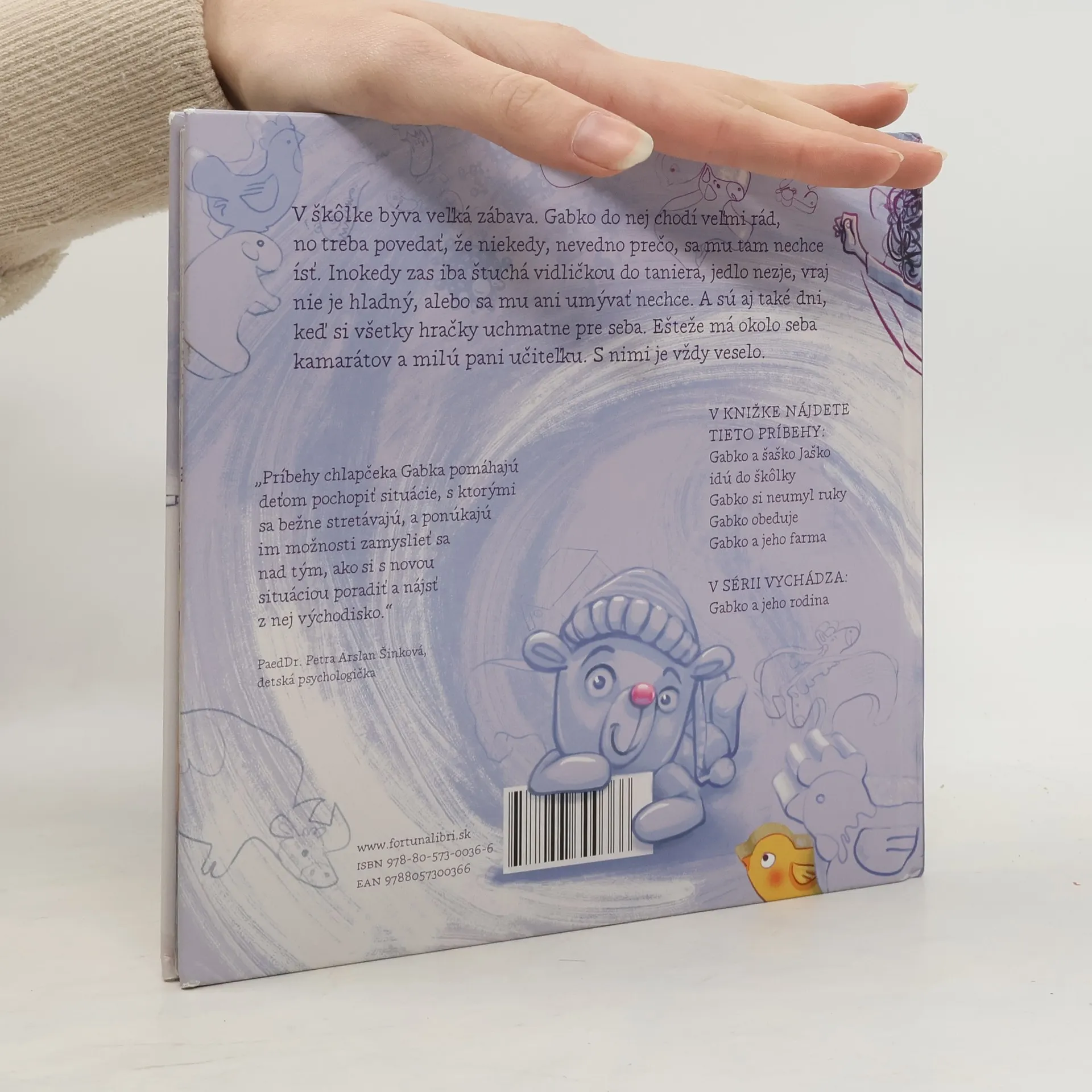 V škôlke býva veľká zábava. Gabko do nej chodí veľmi rád, no treba povedať, že niekedy, nevedno prečo, sa mu tam nechce ísť. Inokedy zas iba štuchá vidličkou do taniera, jedlo nezje, vraj nie je hladný, alebo sa mu ani umývať nechce. A sú aj také dni, keď si všetky hračky uchmatne pre seba. Ešteže má okolo seba kamarátov a milú pani učiteľku. S nimi je vždy veselo.