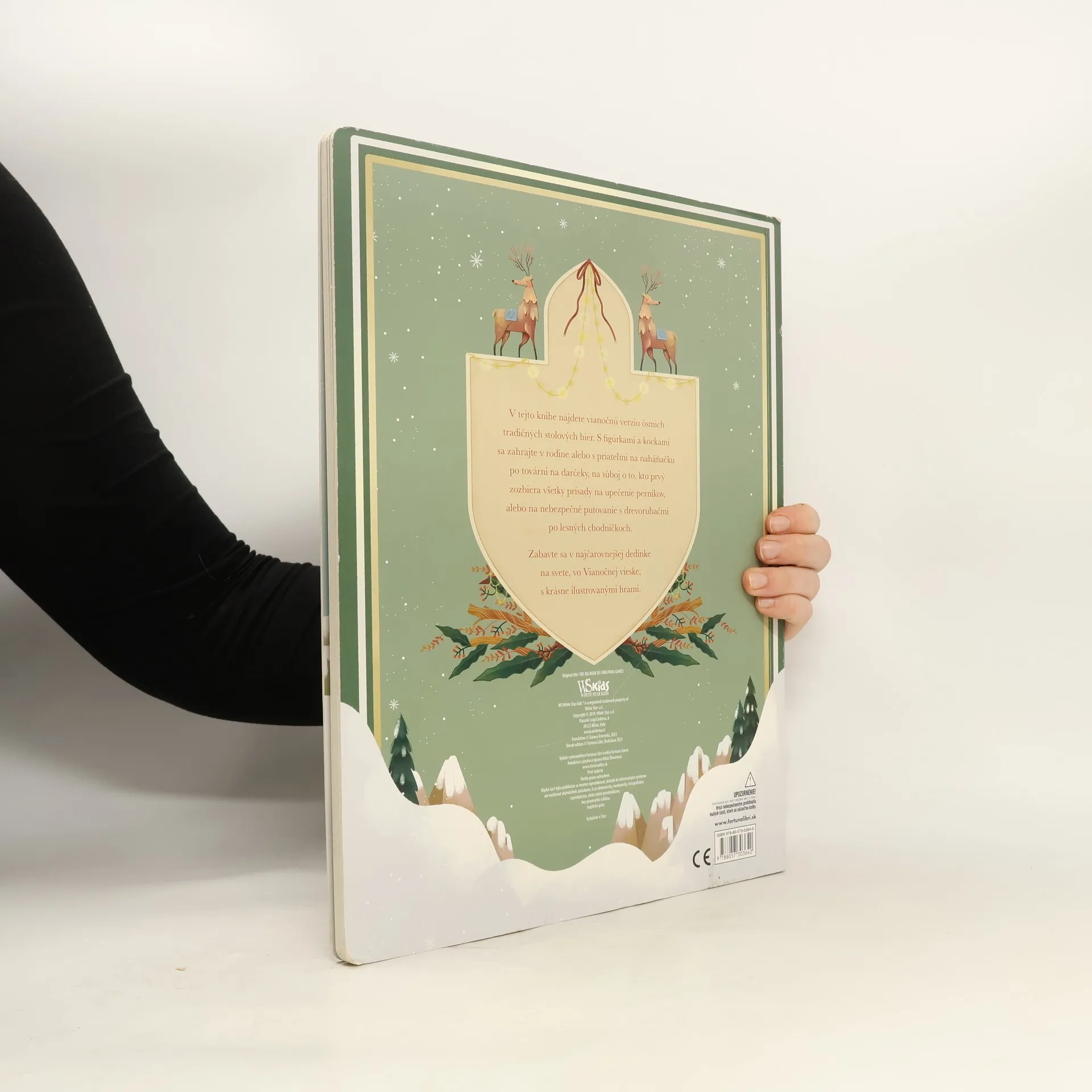 V tejto knihe nájdete vianočnú verziu ôsmich tradičných stolových hier. S figúrkami a kockami sa zahrajte s kamarátmi alebo v rodine na naháňačku po továrni na darčeky, na súboj o to, kto prvý zozbiera všetky prísady na upečenie perníkov, alebo na nebezpečné putovanie s drevorubačmi po lesných chodníčkoch. Zabavte sa v najčarovnejšej dedinke na svete, vo Vianočnej vieske, s krásne ilustrovanými hrami.