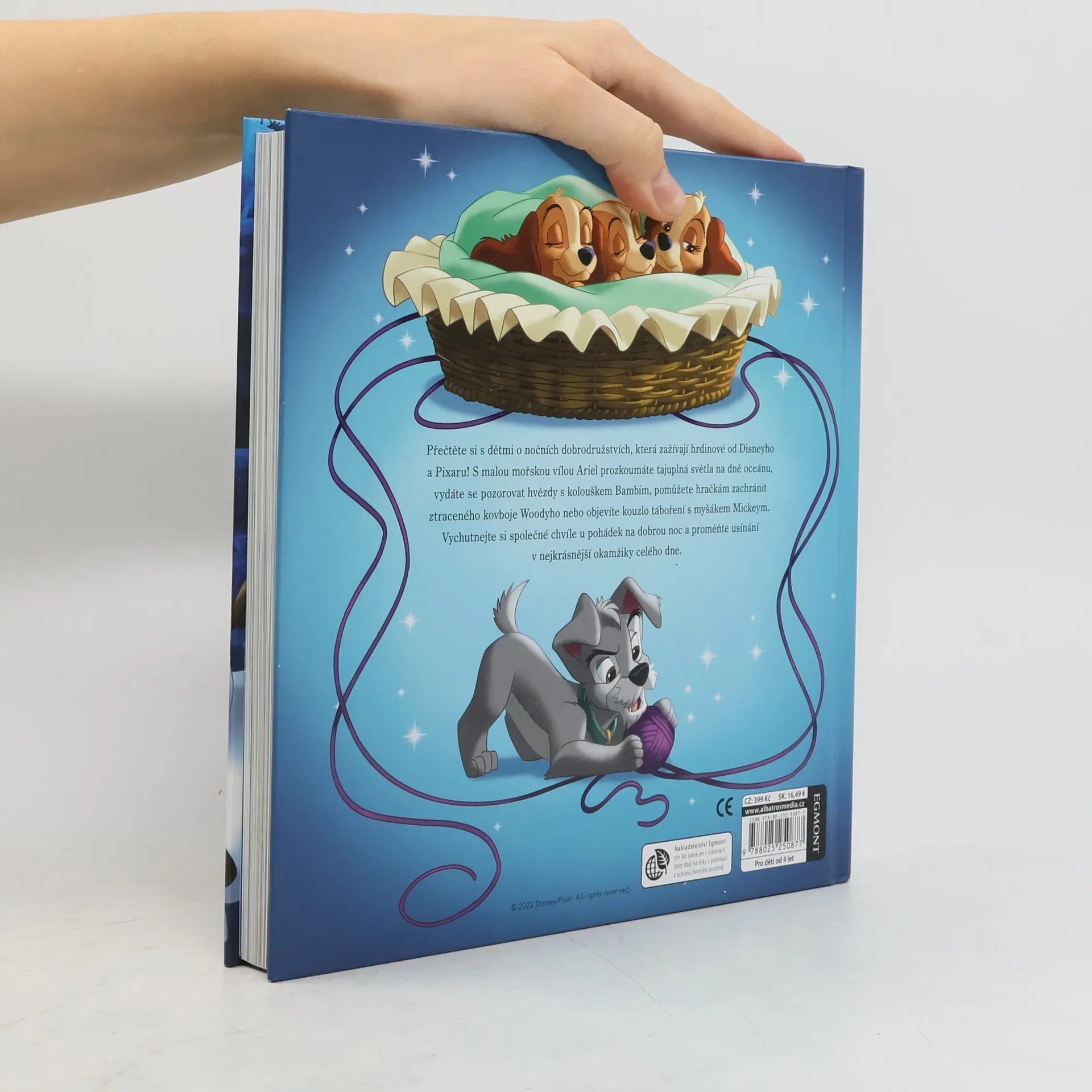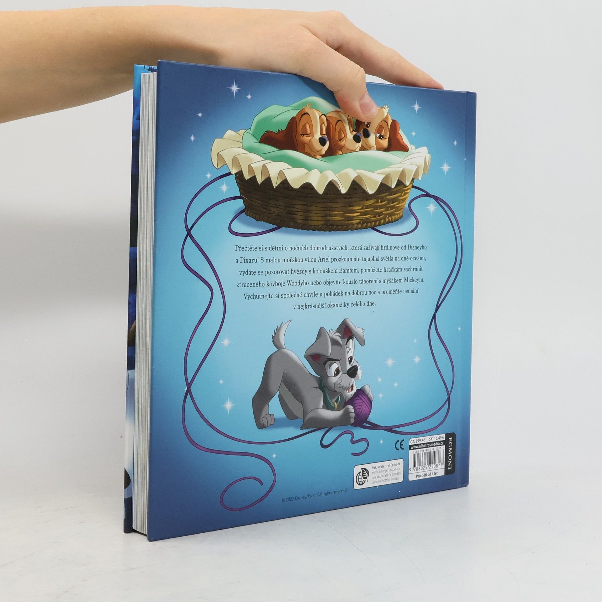 Přečtěte si s dětmi o nočních dobrodružstvích, která zažívají hrdinové od Disneyho a Pixaru! S malou mořskou vílou Ariel prozkoumáte tajuplná světla na dně oceánu, vydáte se pozorovat hvězdy s kolouškem Bambim, pomůžete hračkám zachránit ztraceného kovboje Woodyho nebo objevíte kouzlo táboření s myšákem Mickeym. Vychutnejte si společné chvíle u pohádek na dobrou noc a proměňte usínání v nejkrásnější okamžiky celého dne.