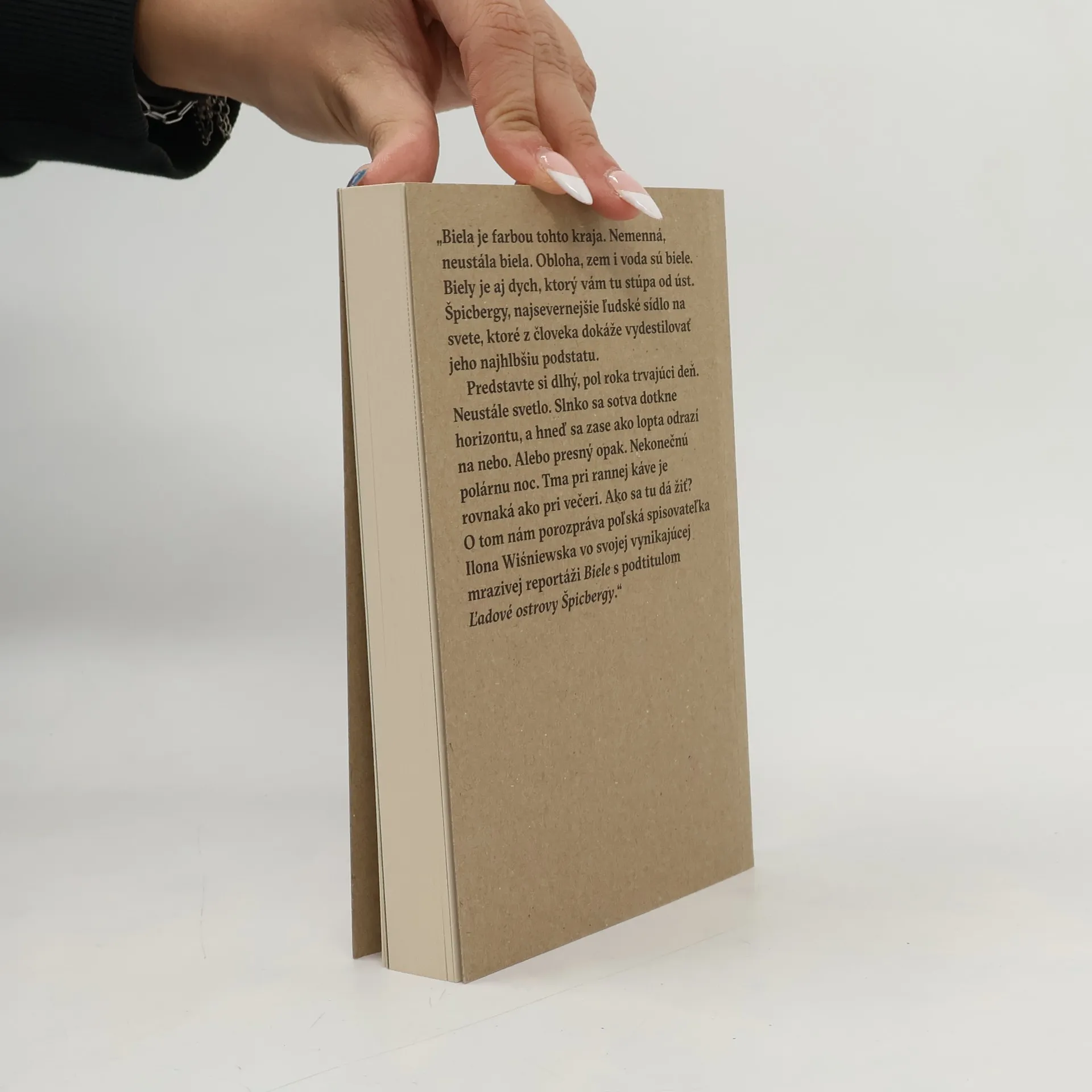 Biela je farbou tohto kraja. Nemenná, neustála biela. Obloha, zem i voda sú biele. Biely je aj dych, ktorý vám tu stúpa od úst. Špicbergy, najsevernejšie ľudské sídlo na svete, ktoré z človeka dokáže vydestilovať jeho najhlbšiu podstatu. Predstavte si dlhý, pol roka trvajúci deň. Neustále svetlo. Slnko sa sotva dotkne horizontu, a hneď sa zase ako lopta odrazí na nebo. Alebo presný opak. Nekonečnú polárnu noc. Tma pri rannej káve je rovnaká ako pri večeri. Ako sa tu dá žiť? O tom nám porozpráva poľská spisovateľka Ilona Wiśniewska vo svojej mrazivej reportážnej knihe Biele s podtitulom Ľadový ostrov Špicbergy. Ľudia na Špicbergoch sú rovnakí, ako všade inde. No predsa máme pocit, ako keby sme sa ocitli na inej planéte. Na tomto mieste žijú ľudia pochádzajúci z takmer päťdesiatich krajín celého sveta. Prišli sem predovšetkým za prácou – do kraja bez kompromisov a bez zľutovania, kde sú si pred mrazmi všetci rovní. Wiśniewska žije s nimi a s radosťou objaviteľky i dokonalou znalosťou miestnych reálií podáva príbehy pozoruhodných miest nórskych Špicbergov. Uhoľné bane. Opustené osady. Hotely. Medzinárodná banka semien. Reportážna knižka Biele je výnimočnou kronikou tohto odľahlého miesta i jeho obyvateľov.