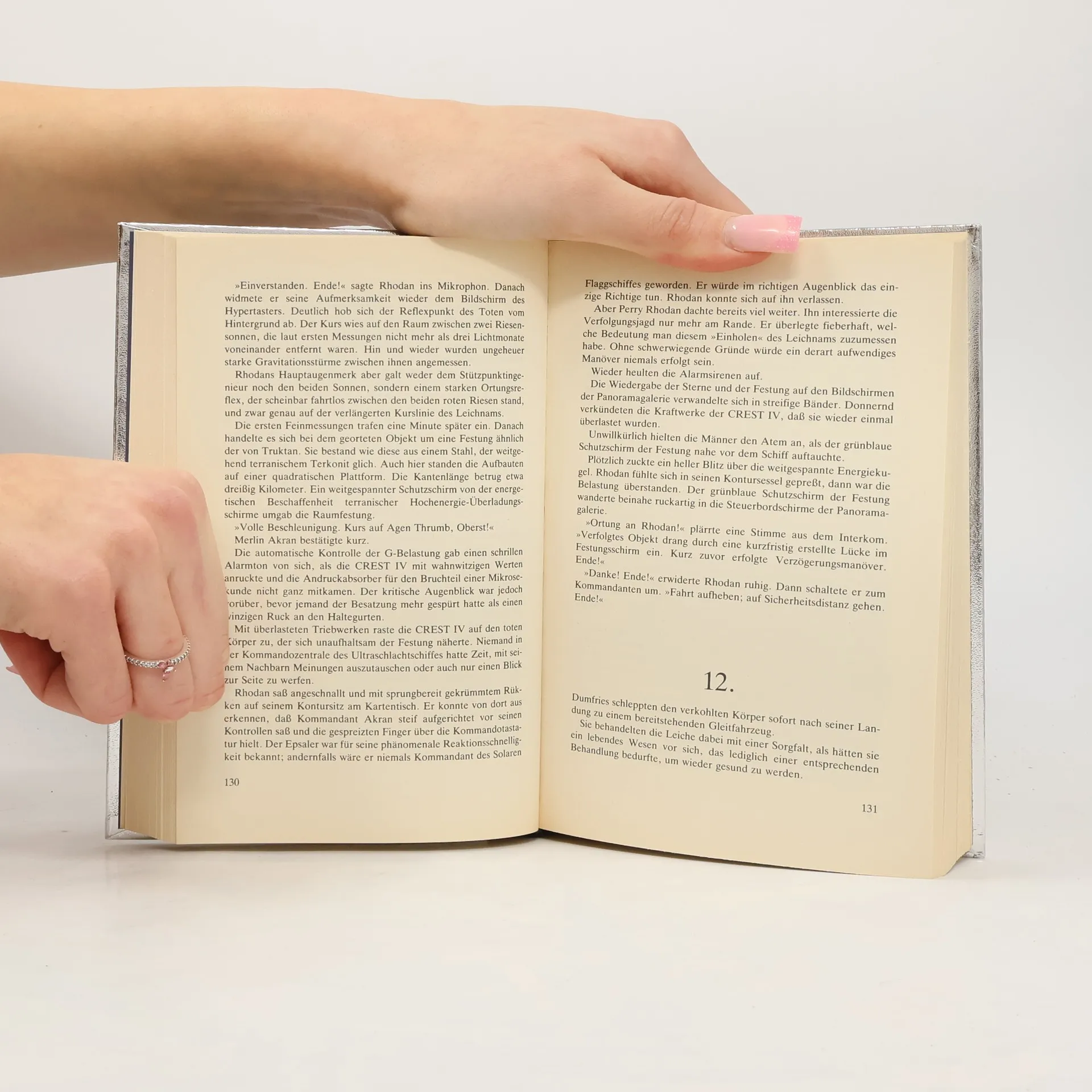 Enthaltene Original-Romane (Heftromane, #343-345 und #347-350):- "Planet der tausend Freuden"- "Die Kidnapper des Auserwählten"- "Verfolgungsjagd im Halbraum"- "Die Sucher von M-87"- "Die kosmische Falle"- "Die Partisanen von der 'Crest'"- "Robot-Patrouille"Weiterhin befindet sich die "Crest IV" mit 5000 Menschen an Bord in der fernen Galaxis M 87, von wo ohne Hilfe der dortigen Herrscher keine Rückkehr in die heimatliche Milchstraße möglich ist. Alle Versuche Perry Rhodans, friedlichen Kontakt aufzunehmen, scheitern an der Forderung, seine beiden halutischen Freunde Icho Tolot und Fancan Teik auszuliefern - was deren Tod bedeuten würde. Rhodan denkt nicht daran, die Haluter zu opfern. Er geht einen anderen Weg und versucht, mit tollkühnen Aktionen und Partisanenkampf an sein Ziel zu gelangen. Er fordert die Mächtigen der fremden Galaxis heraus und weiß, dass jeder Fehler das Ende der "Crest" und ihrer Besatzung zur Folge haben kann.Im 32 Millionen Lichtjahre entfernten Solsystem bereitet man sich inzwischen auf die erwartete Großoffensive der Zweitkonditionierten vor. Als es dann soweit ist und 500 Dolans Feuer und Venichtung zu speien beginnen, ruht die Hoffnung der Verantwortlichen auf sechs winzigen Menschlein und einem Giganten aus Stahl - dem Paladin der Menschheit in einem Kampf der Titanen...