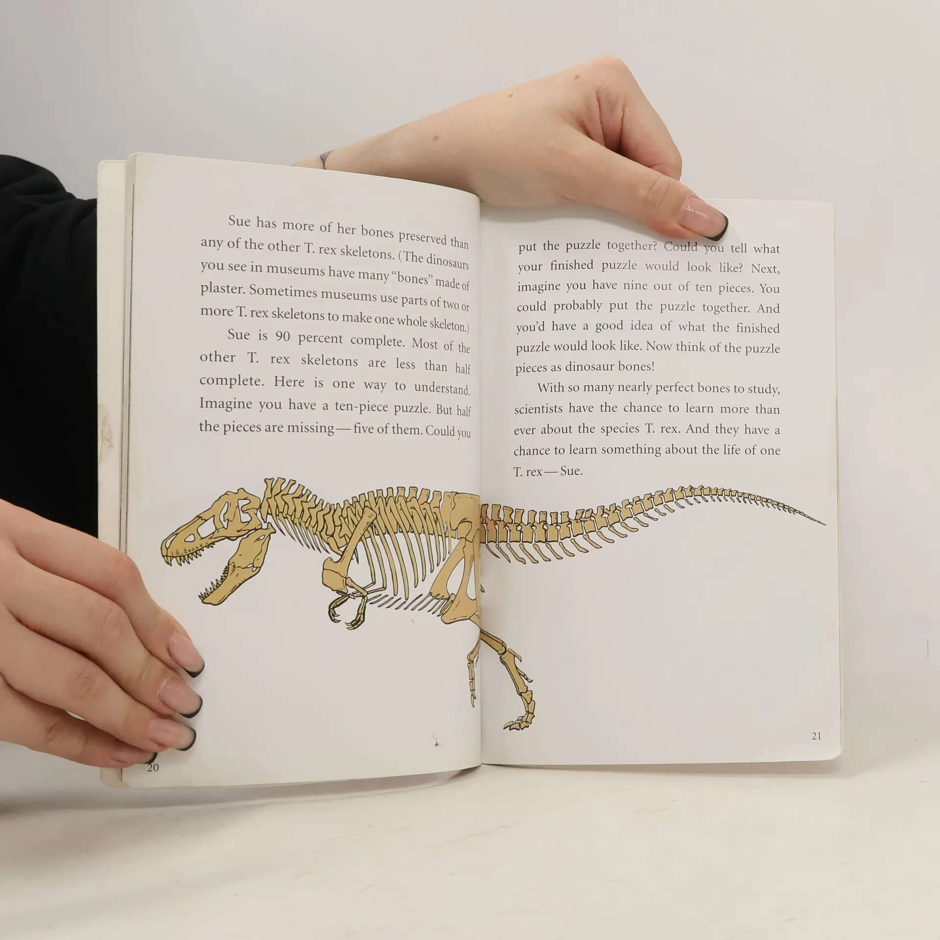 Describes how the fossil remains of the largest and most complete Tyrannosaurus rex was discovered by Susan Hendrickson in South Dakota.