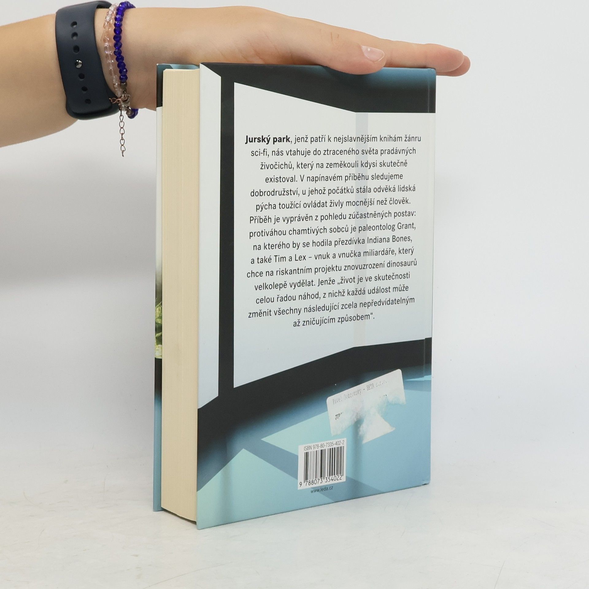 Jurský park, jenž patří k nejslavnějším knihám žánru sci-fi, nás vtahuje do ztraceného světa pradávných živočichů, který na zeměkouli kdysi skutečně existoval. V napínavém příběhu sledujeme dobrodružství, u jehož počátků stála odvěká lidská pýcha toužící ovládat živly mocnější než člověk. Příběh je vyprávěn z pohledu zúčastněných postav: protiváhou chamtivých sobců je paleontolog Grant, na kterého by se hodila přezdívka Indiana Bones, a také Tim a Lex – vnuk a vnučka miliardáře, který chce na riskantním projektu znovuzrození dinosaurů velkolepě vydělat. Jenže „život je ve skutečnosti celou řadou náhod, z nichž každá událost může změnit všechny následující zcela nepředvídatelným až zničujícím způsobem“. „Mláďata skotačila a honila se mezi shovívavými a ospalými dospělými… Byla to roztomilá malá zvířátka. Jenže dospělý velociraptor byl něco úplně jiného. Představoval nejdravějšího dinosaura, který kdy žil. Ačkoli byl poměrně drobný – vážil kolem sta kilo a velký byl přibližně jako leopard – byl rychlý, inteligentní a útočný. Napadal oběti ostrými zuby, silnými předními končetinami s drápy a strašlivým osamoceným drápem na zadní noze.“