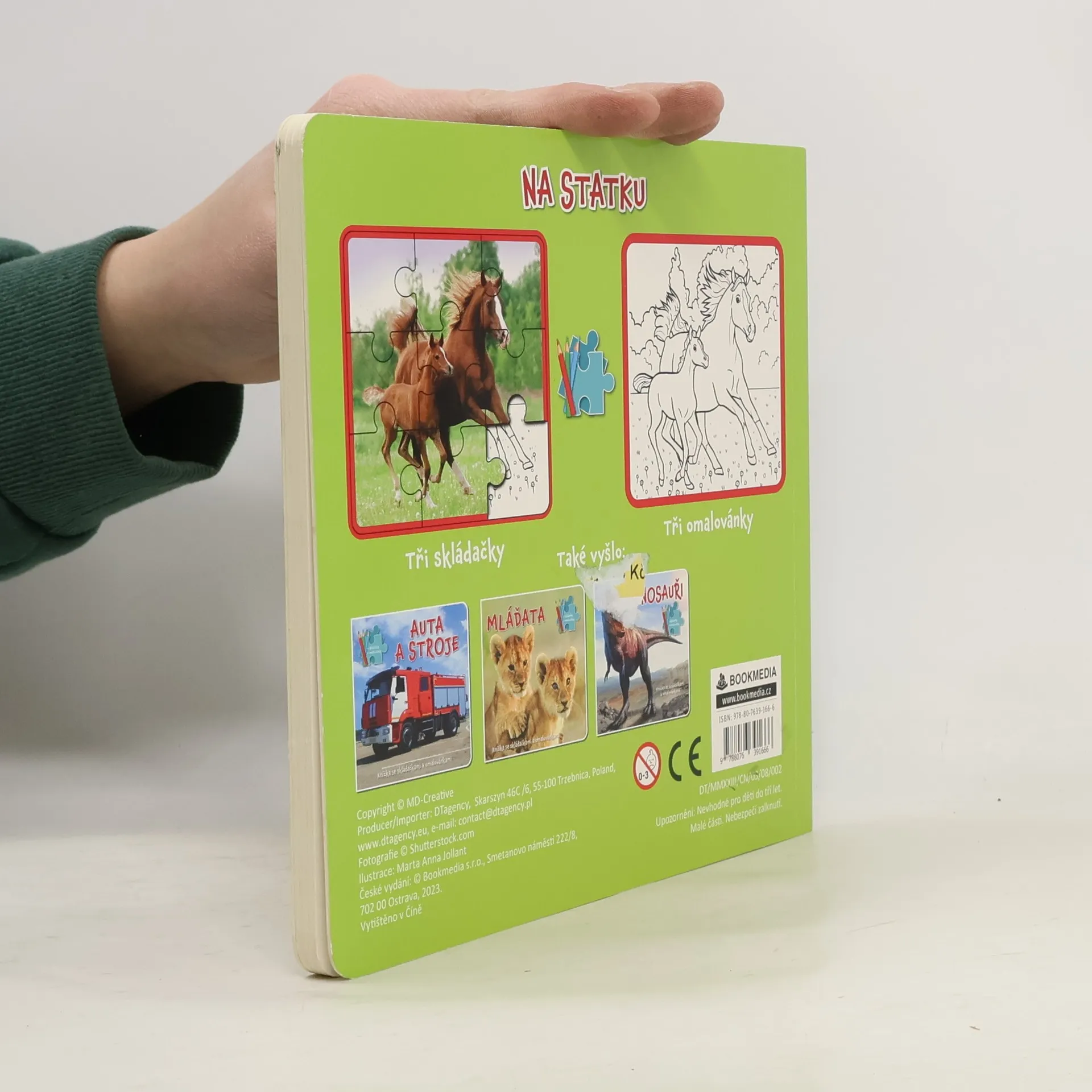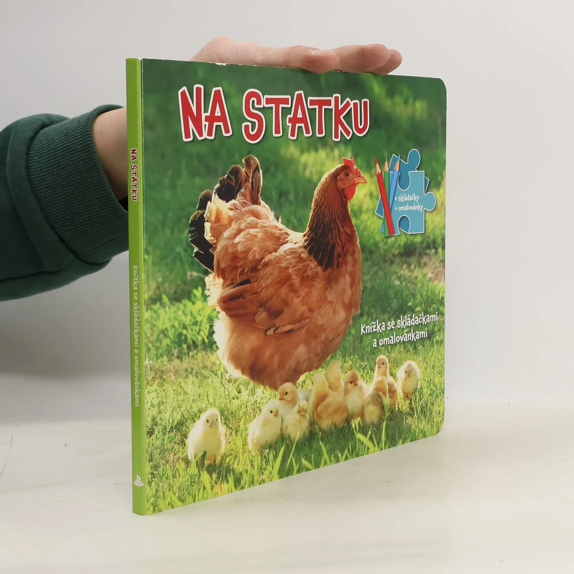 Leporelo se spoustou barevných obrázků, třemi stránkami k vybarvování a skládání puzzle. Kniha je určena pro děti od tří let.