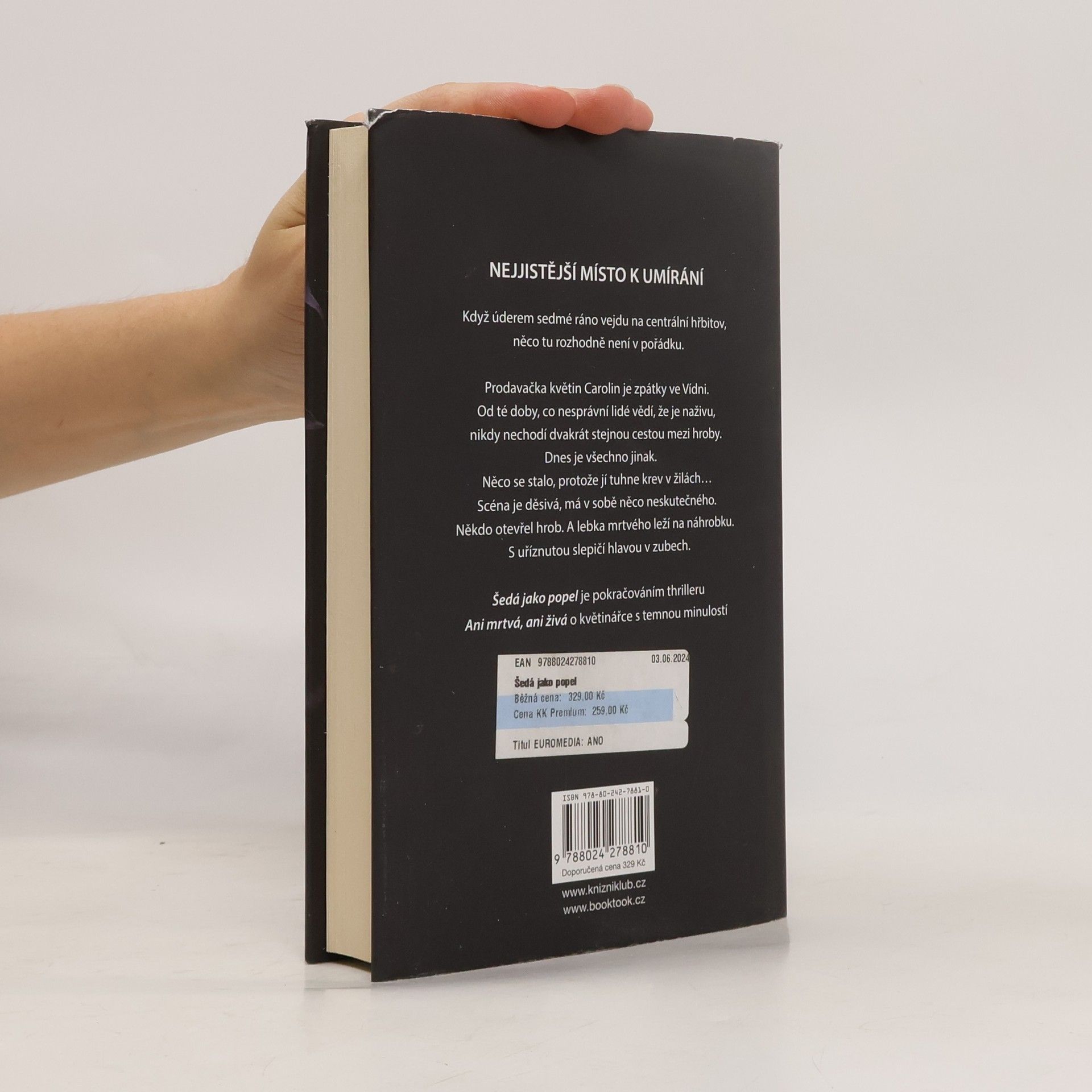 Prodavačka květin Carolin je zpátky ve Vídni. Od té doby, co nesprávní lidé vědí, že je naživu, nikdy nechodí dvakrát stejnou cestou mezi hroby. Dnes je všechno jinak. Něco se stalo, protože jí tuhne krev v žilách… Scéna je děsivá, má v sobě něco neskutečného. Někdo otevřel hrob. A lebka mrtvého leží na náhrobku. S uříznutou slepičí hlavou v zubech. Vanitas – Šedá jako popel, je pokračováním thrilleru Ani mrtvá, ani živá, o květinářce s temnou minulostí