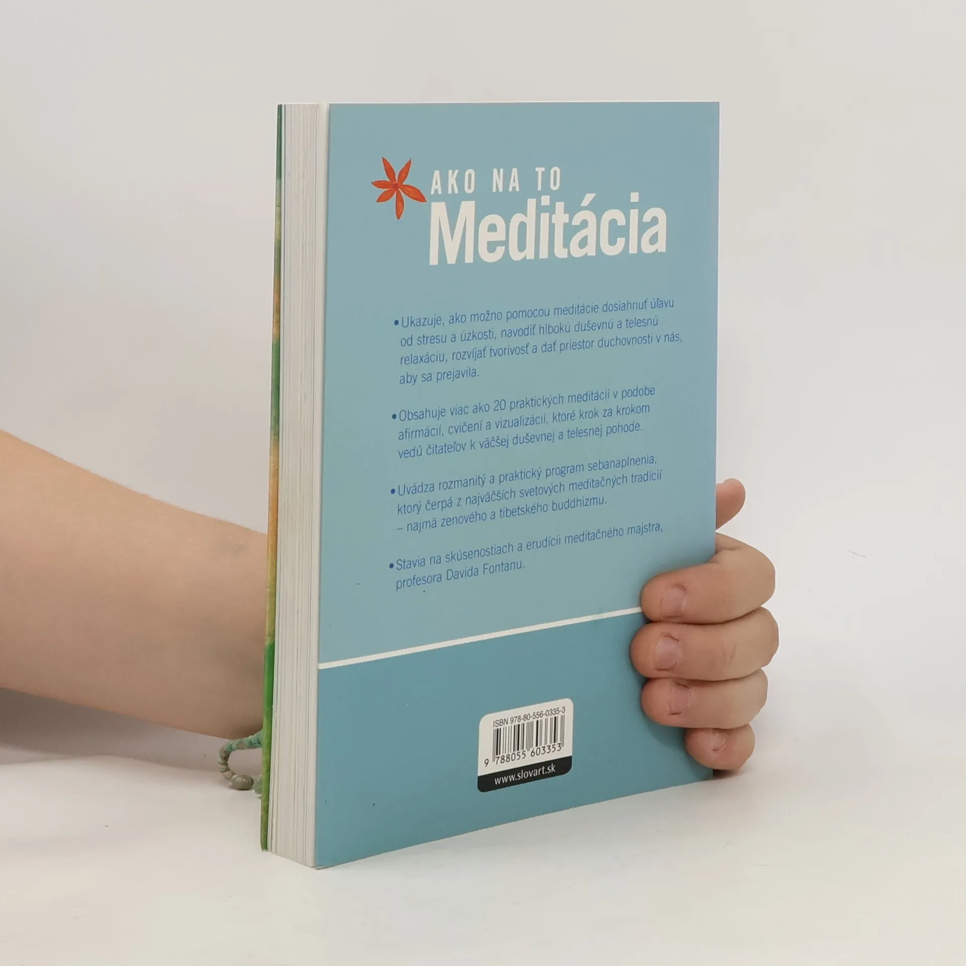 Táto praktická kniha s unikátnymi ilustráciami ukazuje, ako možno meditáciou dosiahnuť úľavu od stresu a úzkosti, navodiť hlboké uvoľnenie mysle a tela, rozvinúť tvorivosť a vytvoriť priestor na prejavenie sa našej pravej duchovnej podstaty a pocitom. Oplýva cvičeniami, vizualizáciami a afirmáciami a pomôže nám – bez ohľadu na naše momentálne rozpoloženie či potreby – dosiahnuť súlad tela a duše. Na základe svojich 25-ročných skúseností majster meditácie David Fontana prevedie čitateľov po ceste seba objavovania a napokon aj seba naplnenia. Vysvetľuje, ako začať meditovať vo vhodnom rozpoložení mysle, za vhodných okolností a so správnymi očakávaniami. Rozoberá veľké tradičné školy meditácie, od zen buddhistickej až po taoistickú. Jeho eklektické podanie sa stáva základom praktického programu na dosiahnutie vnútorného mieru. Keď raz s meditovaním začneme, stane sa celoživotným základom bohatého a naplneného života.