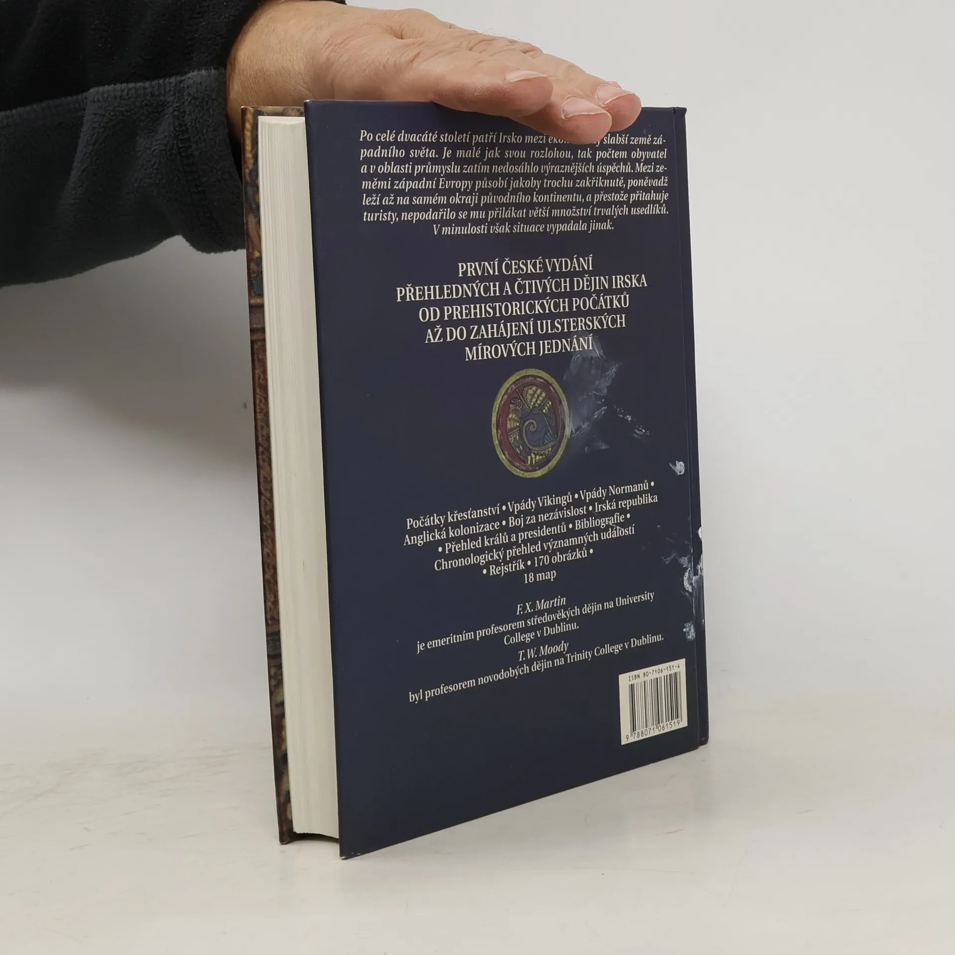 Po celé dvacáté století patří Irsko mezi ekonomicky slabší země západního světa. Je malé jak svou rozlohou, tak počtem obyvatel a v oblasti průmyslu zatím nedosáhlo výraznějších úspěchů. Mezi zeměmi západní Evropy působí jakoby trochu zakřiknutě, poněvadž leží až na samém okraji původního kontinentu, a přestože přitahuje turisty, nepodařilo se mu přilákat větší množství trvalých usedlíků.V minulosti však situace vypadala jinak. První české vydání přehledných a čtivých dějin Irska od prehistorických počátků až do zahájení Ulsterských mírových jednaní Počátky křesťanství • Vpády Vikingů • Vpády Normanů. Anglická kolonizace • Boj za nezávislost • Irská republika • Přehled králů a presidentů • Bibliografie • Chronologický přehled významných událostí • Rejstřík • 170 obrázků • 18 map V roce 2000 dotisk knihy.