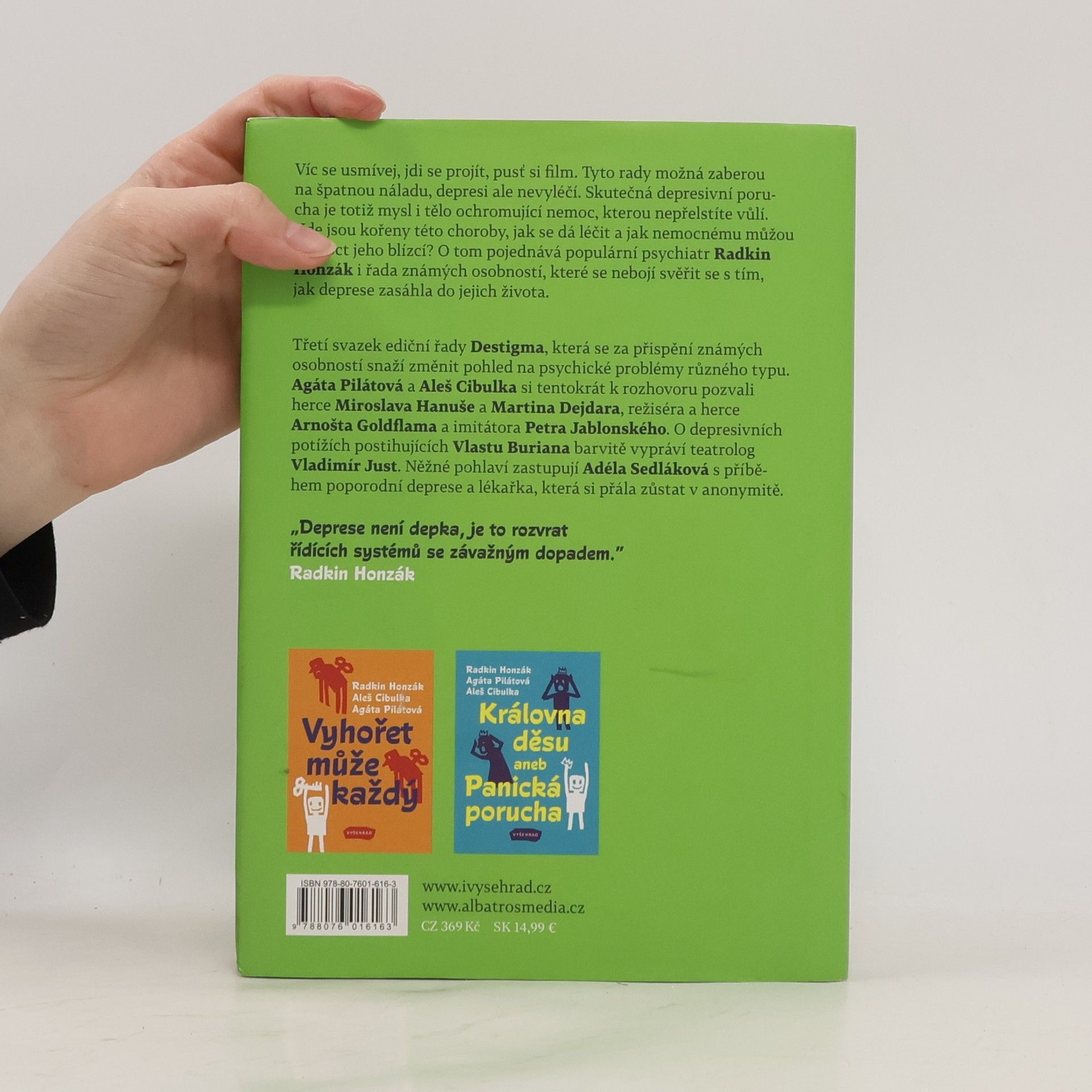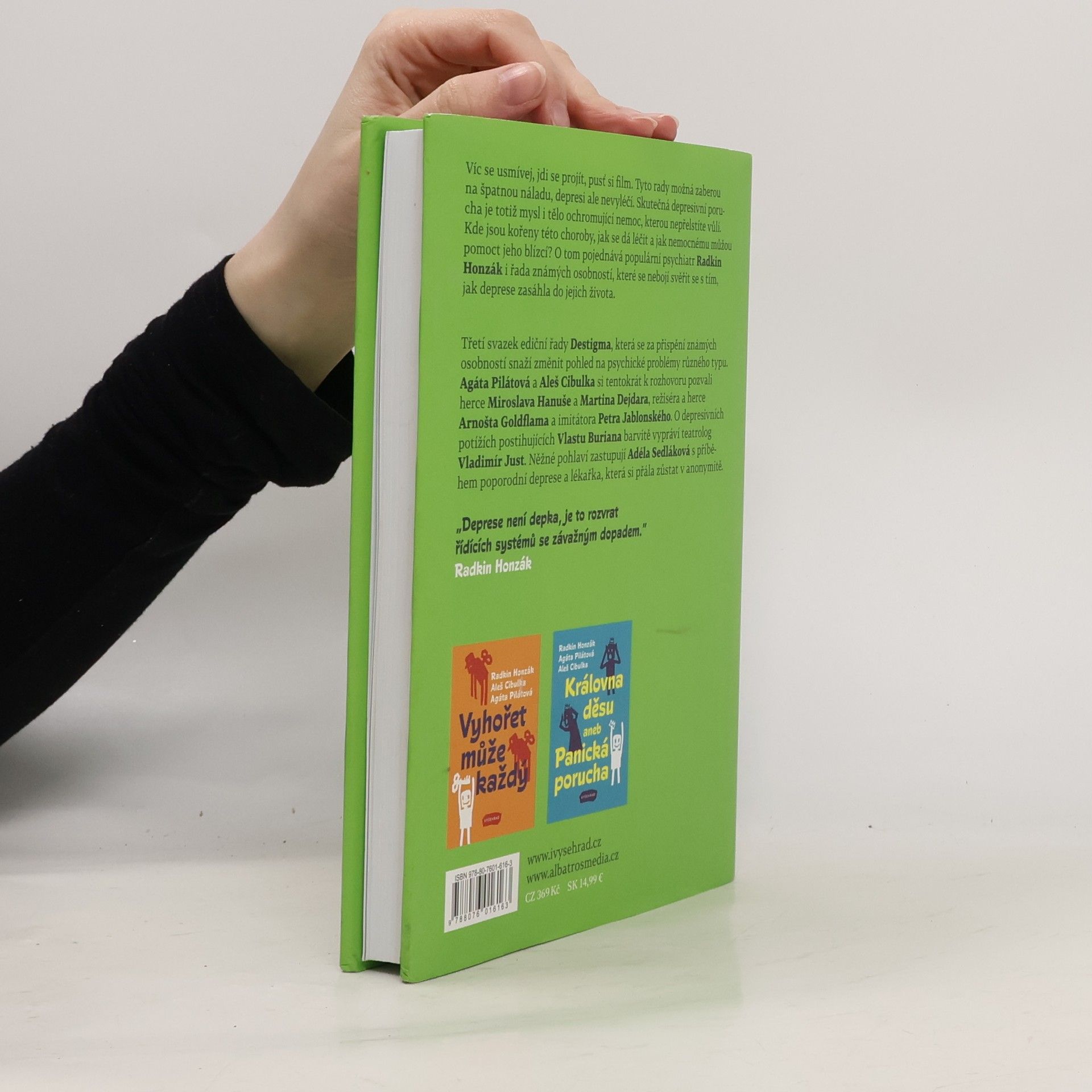 Víc se usmívej, jdi se projít, pusť si film. Tyto rady možná zaberou na špatnou náladu, depresi ale nevyléčí. Skutečná depresivní porucha je totiž mysl i tělo ochromující nemoc, kterou nepřelstíte vůlí. Kde jsou kořeny této choroby, jak se dá léčit a jak nemocnému můžou pomoct jeho blízcí? O tom pojednává populární psychiatr Radkin Honzák i řada známých osobností, které se nebojí svěřit s tím, jak deprese zasáhla do jejich života. Sdílet 0