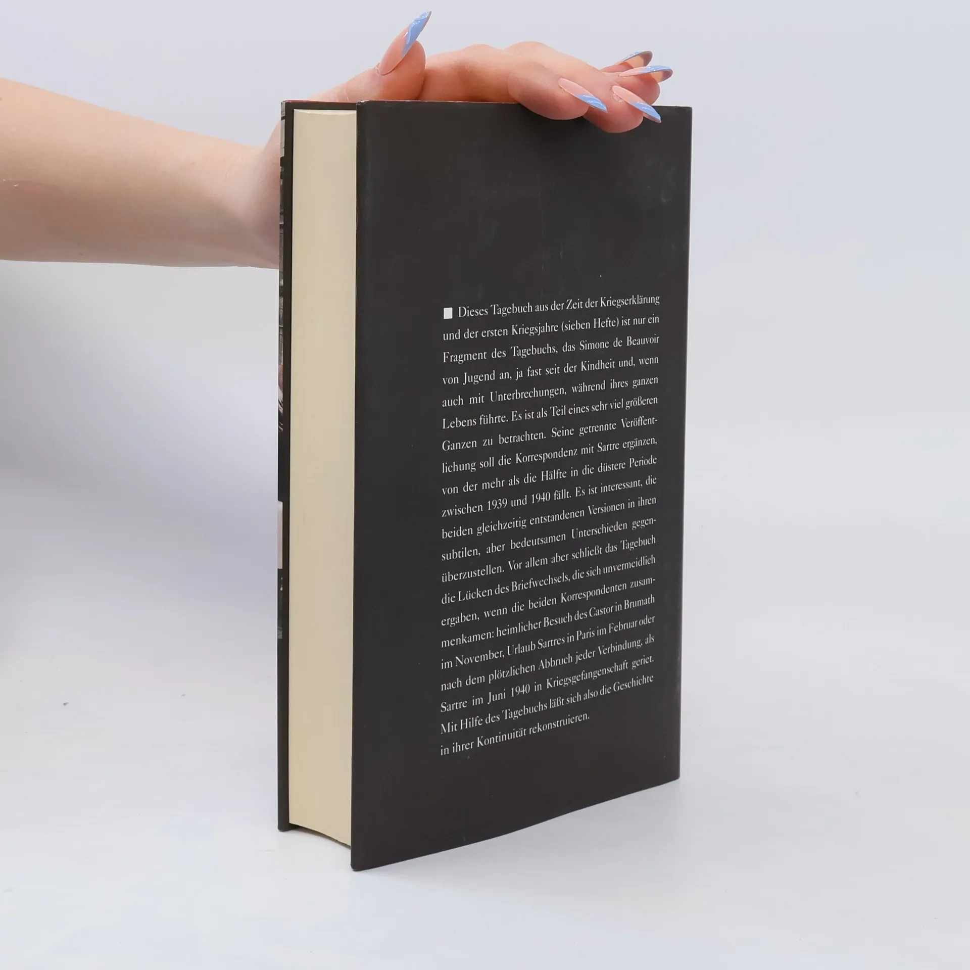 Dieses Tagebuch aus der Zeit der Kriegserklärung und der ersten Kriegsjahre (sieben Hefte) ist nur ein Fragment des Tagebuchs, das Simone de Beauvoir von Jugend an, ja fast seit der Kindheit und, wenn auch mit Unterbrechungen, während ihres ganzen Lebens führte. Es ist als Teil eines sehr viel größeren Ganzen zu betrachten. Seine getrennte Veröffentlichung soll die Korrespondenz mit Sartre ergänzen, von der mehr als die Hälfte in die düstere Periode zwischen 1939 und 1940 fällt. Es ist interessant, die beiden gleichzeitig entstandenen Versionen in ihren subtilen, aber bedeutsamen Unterschieden gegenüberzustellen. Vor allem aber schließt das Tagebuch die Lücken des Briefwechsels, die sich unvermeidlich ergaben, wenn die beiden Korrespondenten zusammenkamen: heimlicher Besuch des Castor in Brumath im November, Urlaub Sartres in Paris im Februar oder nach dem plötzlichen Abbruch jeder Verbindung, als Sartre im Juni 1940 in Kriegsgefangenschaft geriet. Mit Hilfe des Tagebuchs läßt sich also die Geschichte in ihrer Kontinuität rekonstruieren.