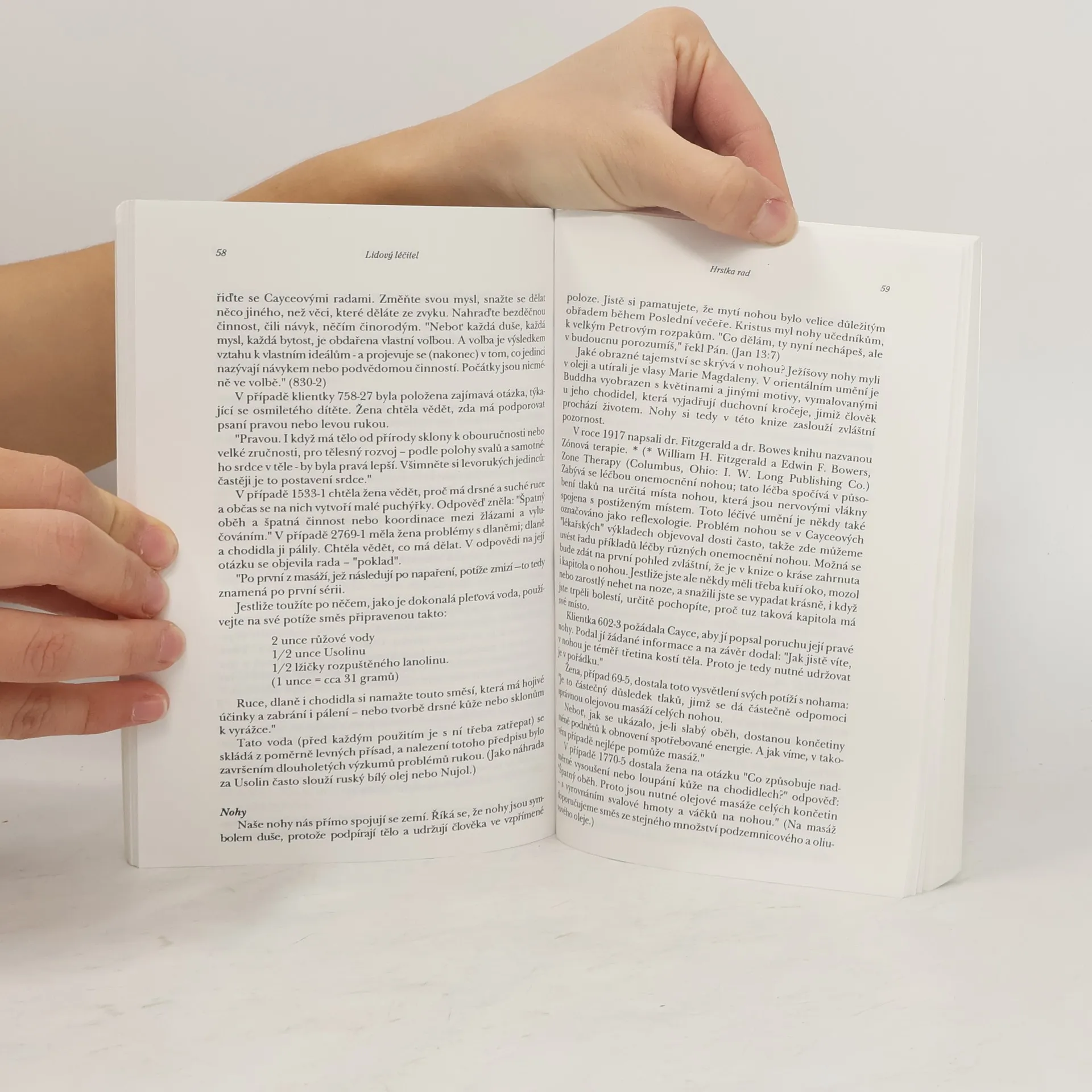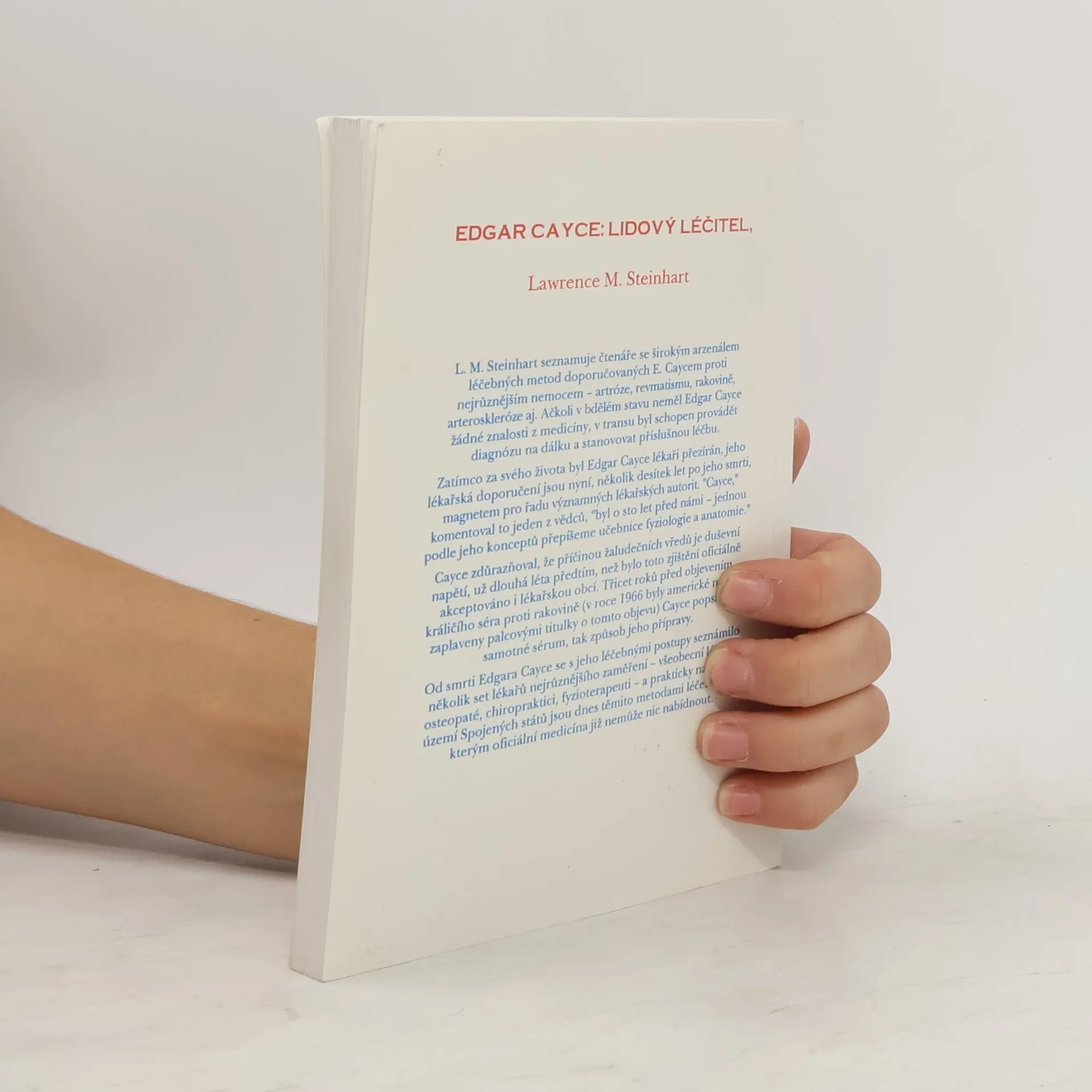 L.M.Steinhart seznamuje čtenáře se širokým arzenálem léčebných metod doporučovaných E. Caycem proti nejrůznějším nemocem - artróze, revmatismu, rakovině, arteroskleróze aj. Ačkoli v bdělém stavu neměl Edgar Cayce žádné znalosti z medicíny, v transu byl schopen provádět diagnózu na dálku a stanovovat příslušnou léčbu.