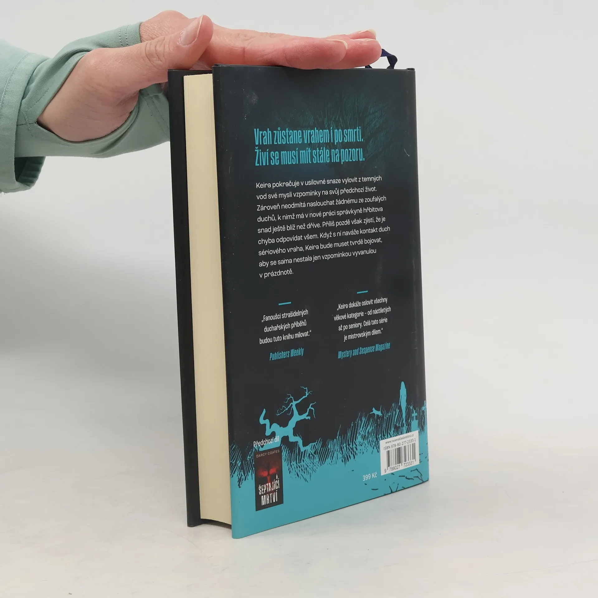 Nikdy ji nenechá jít… Keira, najatá jako nová hrobnice blightského hřbitova, žije neustále obklopená mrtvými. Pozorují ji v mlze. Bezhlesně na ni volají. Zoufale čekají na pomoc, aby mohli konečně klidně odejít do posmrtného života – a neslyší je nikdo jiný než ona. Všichni neklidní duchové však netouží po spáse. Někteří mrtví nenávidí živé natolik, že nemohou najít klid. Zatímco se Keira snaží odkrýt spletitou minulost několika nejstarších obyvatel hřbitova, z temného lesa se vyplíží nebezpečí. Před mnoha desetiletími tam pohřbili nemilosrdného sériového vraha, jehož přízrak znetvořila jeho násilná povaha. Je rozzuřený. Nenasytný. A když Keira nevědomky odpoví na jeho volání, mohla by se stát jeho poslední obětí.