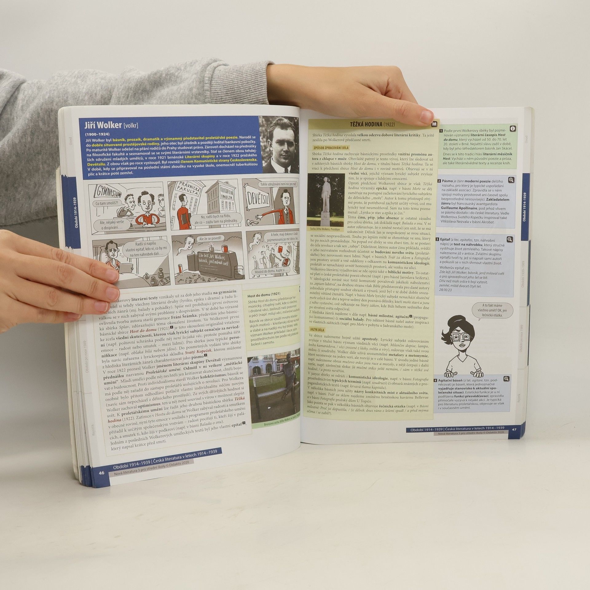 Učebnice obsahuje výklad k literatuře od roku 1914 po současnost. V chronologickém sledu seznamuje žáky s vývojem světové a české literatury, a to ve třech celcích (Období 1914–1939, Období 1939–1989 a Období po roce 1989), z nichž každý je tvořen dvěma či třemi kapitolami.