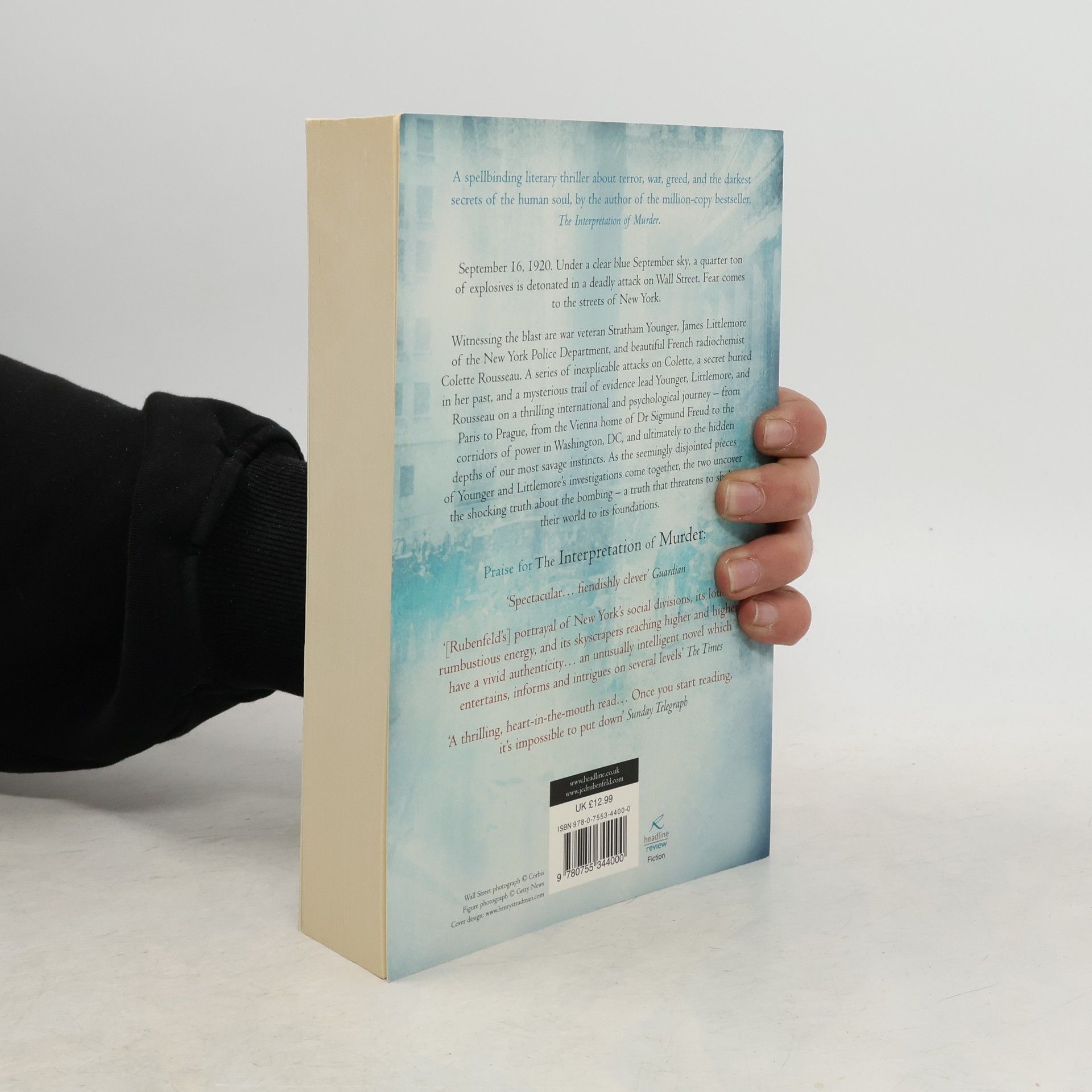 Krimi. Under a clear blue September sky, a quarter ton of explosives is detonated in a deadly attack on Wall Street. Witnessing the blast are i.a. war veteran Stratham Younger and his friend James Littlemore of the New York Police Department. A mysterious trail of evidence leads the two on a thrilling international and psychological journey
