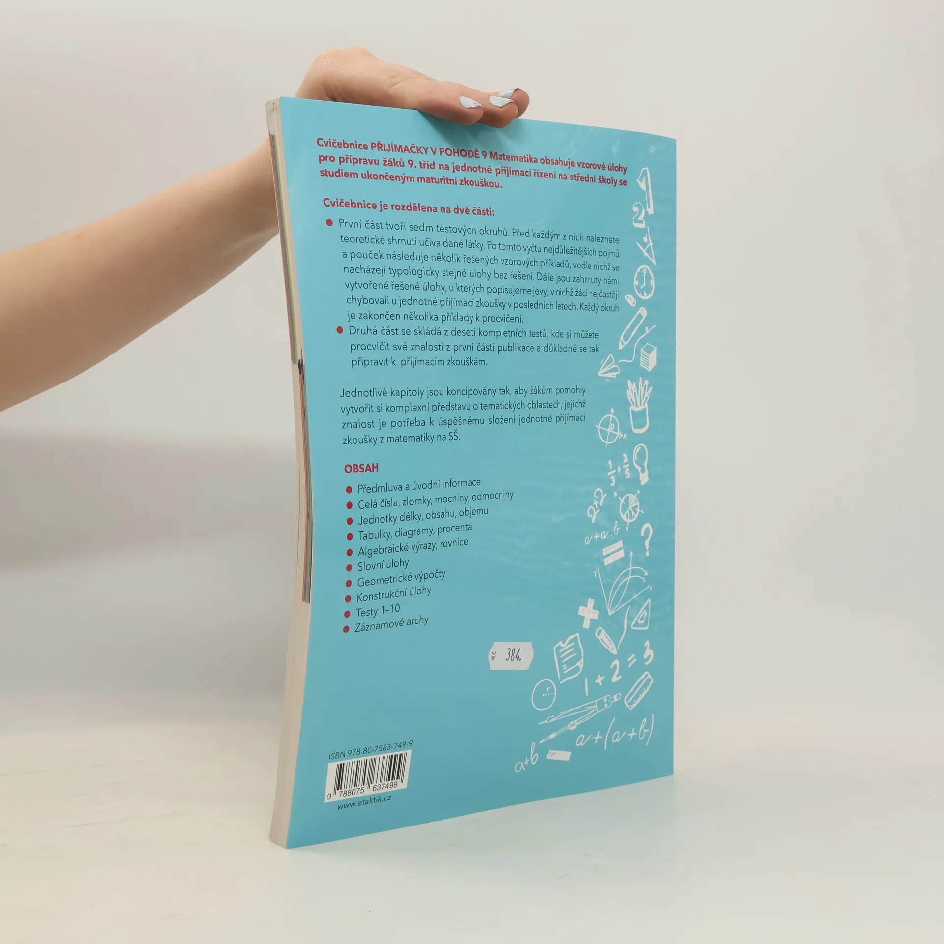 Dostaň se na vysněnou školu - v pohodě! Cvičebnice Přijímačky v pohodě 9 - matematika obsahuje materiály pro komplexní přípravu na Jednotou přijímací zkoušku na střední školy se studiem ukončeným maturitní zkouškou. Příručka obsahuje 7 testovacích okruhů. Každý okruh se skládá ze shrnutí učiva, dvojic řešených a neřešených úloh. Následují vypracované úlohy, ve kterých se v minulých letech nejvíce chybovalo s radami, jak se chybám vyhnout. Okruh uzavírají úlohy k procvičení. Nakonec si své znalosti muže žák procvičit pomocí 10 ukázkových didaktických testu i s odpovědními archy. K cvičebnici je navíc e-learning s videi vysvětlujícími učivo a dalšími úlohami a řešením. Přístup získáte po zaregistrování a zadání přístupového kódu na https://studium.vpohode.cz/registrace