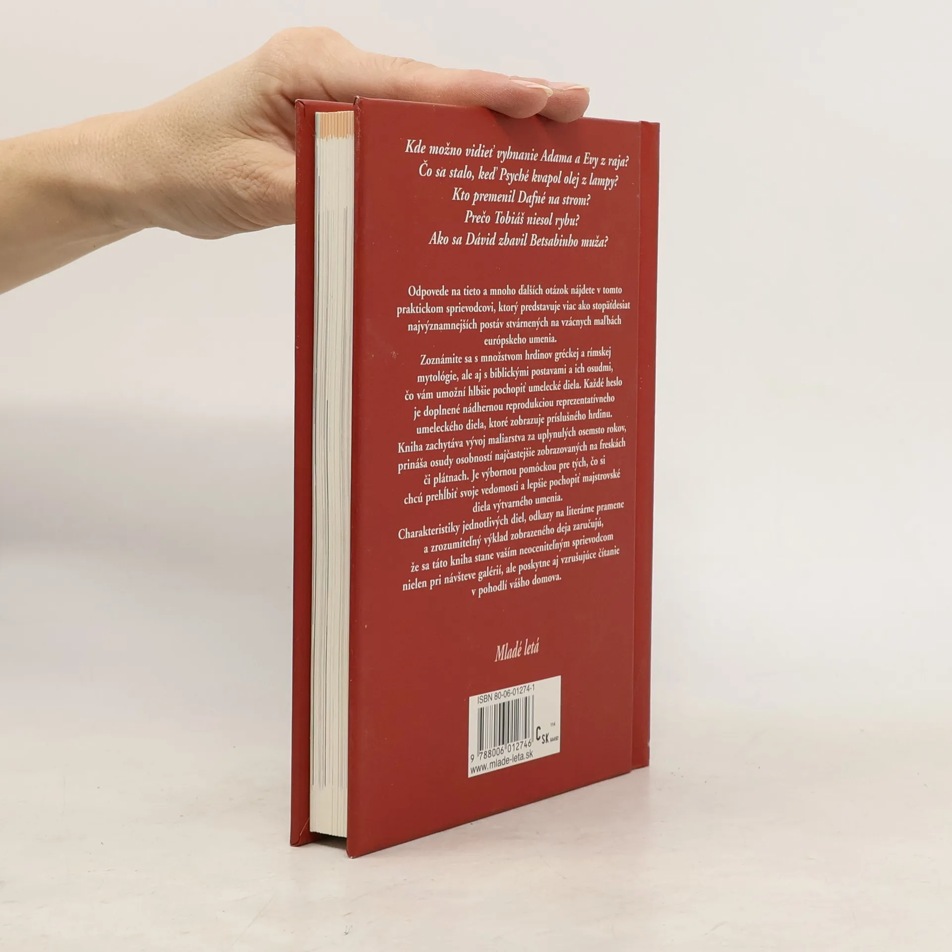 Kde možno vidieť vyhnanie Adama a Evy z raja? Čo sa stalo, keď Psyché kvapol olej z lampy? Kto premenil Dafné na strom?Zrodila sa Venuša z morskej peny, alebo bola dcérou Jupitera? Prečo Tobiáš niesol rybu? Odpovede na tieto a mnoho ďalších otázok nájdete v tomto praktickom sprievodcovi, ktorý predstavuje viac ako 150 najvýznamnejších postáv stvárnených na vzácnych maľbách európskeho umenia. Zoznámite sa s množstvom hrdinov gréckej a rímskej mytológie, ale aj s biblickými postavami a ich osudmi, čo vám umožní hlbšie pochopiť umelecké diela. Každé heslo je doplnené nádhernou reprodukciou významného umeleckého diela, ktoré zobrazuje príslušného hrdinu. Krásna publikácia anglického kunsthistorika Marcusa Lodwicka určite poteší milovníkov výtvarného umenia a histórie. Kniha je rozdelená na dve časti – Postavy z gréckej a rímskej mytológie a Biblické postavy. Reprezentatívny výber maliarskych diel, ktoré vznikli za posledných 800 rokov, zachytáva hlavnú udalosť alebo postavu v historickom kontexte, ktorú potom text beletristicky popisuje. Zároveň sú v tzv. informačnom bloku uvedené najznámejšie obrazy na danú tému, kto ich namaľoval a v ktorej známej svetovej galérii sa nachádzajú. Charakteristiky jednotlivých diel, odkazy na literárne pramene a zrozumiteľný výklad zobrazeného deja zaručujú, že sa táto kniha stane vaším neoceniteľným sprievodcom nielen pri návšteve galérií, ale poskytne aj vzrušujúce čítanie v pohodlí vášho domova.