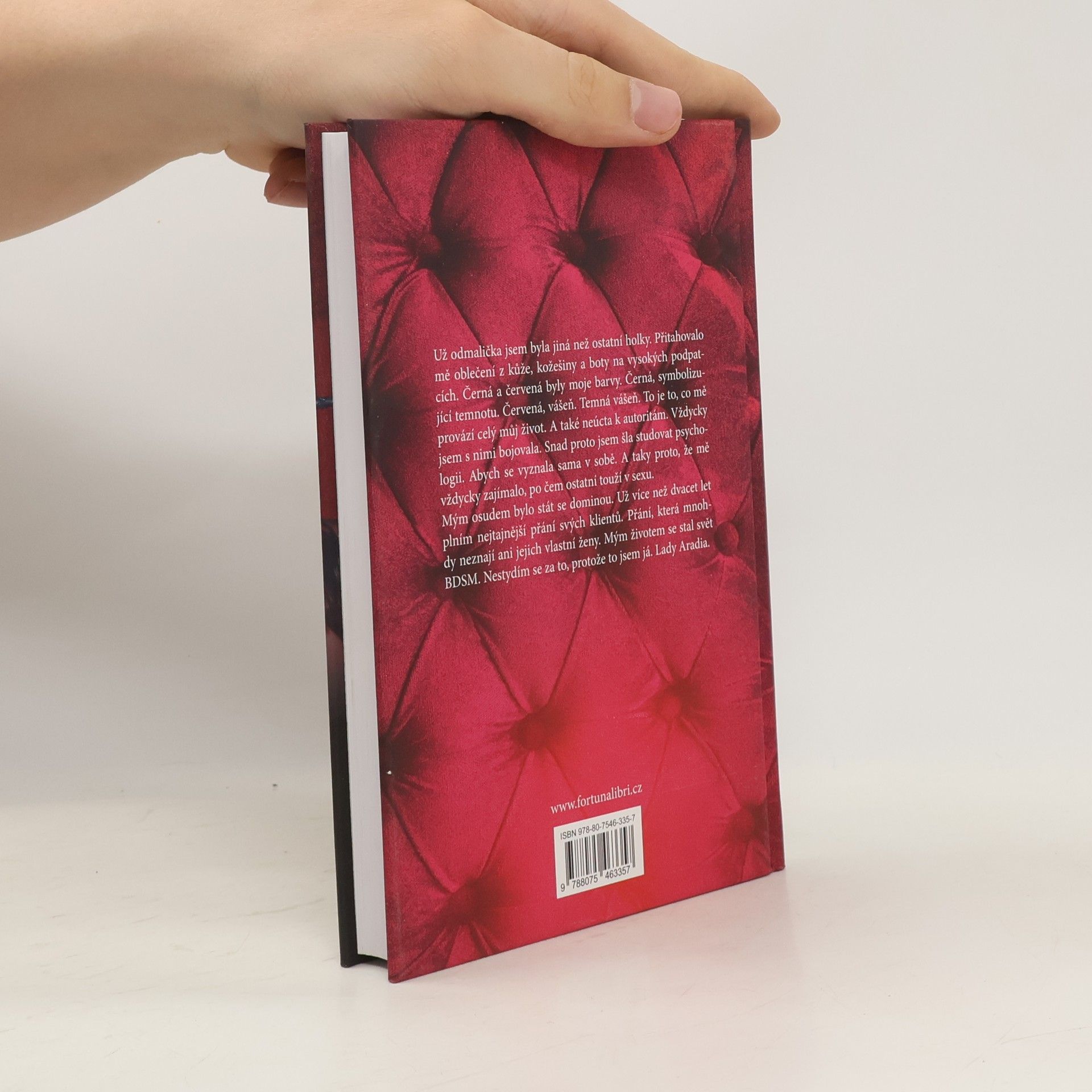Už odmalička jsem byla jiná než ostatní holky. Přitahovalo mě oblečení z kůže, kožešiny a boty na vysokých podpatcích. Černá a červená byly moje barvy. Černá, symbolizující temnotu. Červená, vášeň. Temná vášeň. To je to, co mě provází celý můj život. A také neúcta k autoritám. Vždycky jsem s nimi bojovala. Snad proto jsem šla studovat psychologii. Abych se vyznala sama v sobě. A taky proto, že mě vždycky zajímalo, po čem ostatní touží v sexu. Mým osudem bylo stát se dominou. Už více než dvacet let plním nejtajnější přání svých klientů. Přání, která mnohdy neznají ani jejich vlastní ženy. Mým životem se stal svět BDSM. Nestydím se za to, protože to jsem já. Lady Aradia.