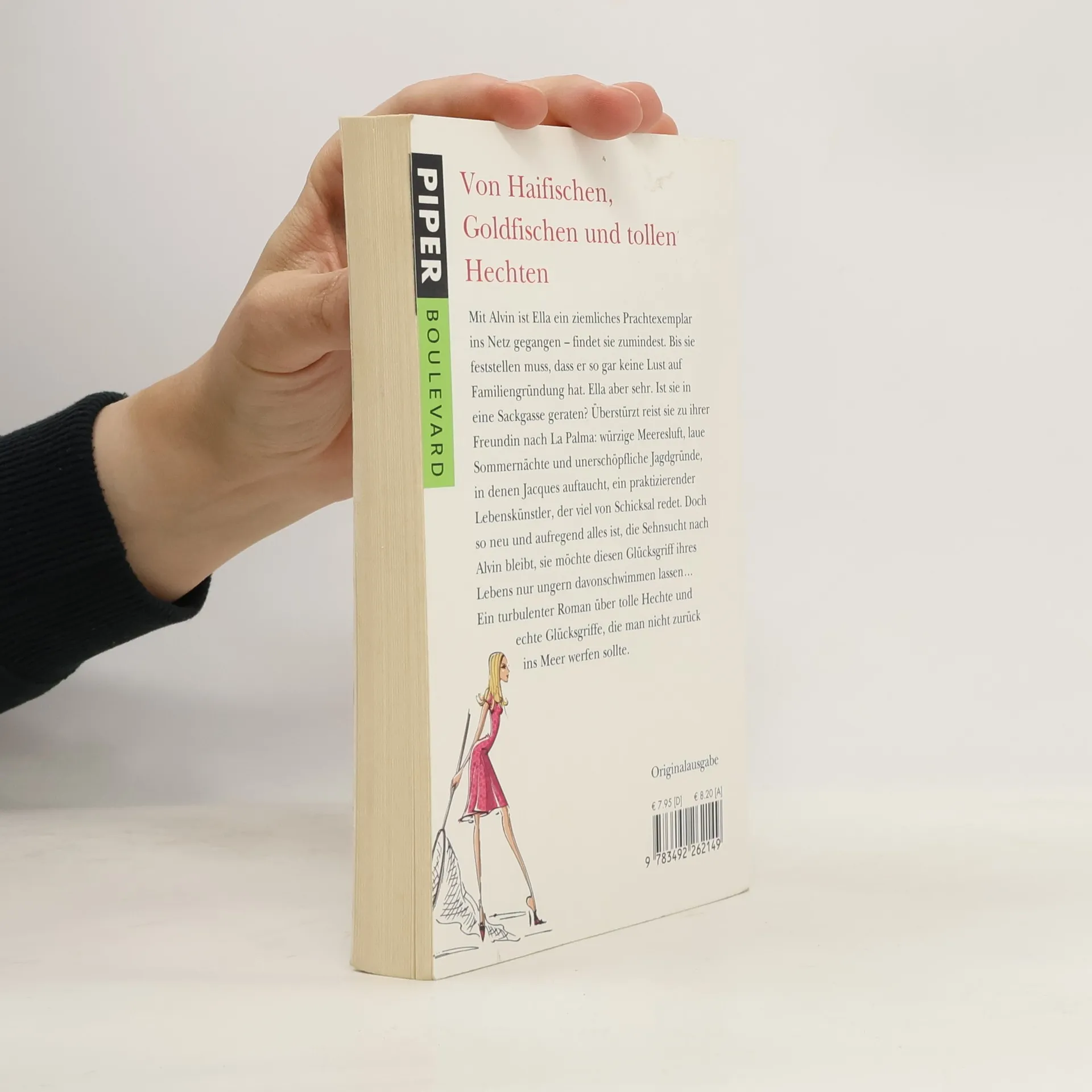 Mit Alvin ist Ella ein ziemliches Prachtexemplar ins Netz gegangen – findet sie zumindest. Bis sie feststellen muss, dass er so gar keine Lust auf Familiengründung hat. Ella aber sehr. Ist sie in eine Sackgasse geraten? Überstürzt reist sie zu ihrer Freundin nach La Palma: würzige Meeresluft, laue Sommernächte und unerschöpfliche Jagdgründe, in denen Natan auftaucht, ein praktizierender Lebenskünstler, der es ernst zu meinen scheint. Doch so neu und aufregend alles ist, die Sehnsucht nach Alvin bleibt, sie möchte diesen Glücksgriff ihres Lebens nur ungern davonschwimmen lassen... Ein turbulenter Roman über tolle Hechte und echte Glücksgriffe, die man nicht zurück ins Meer werfen sollte.