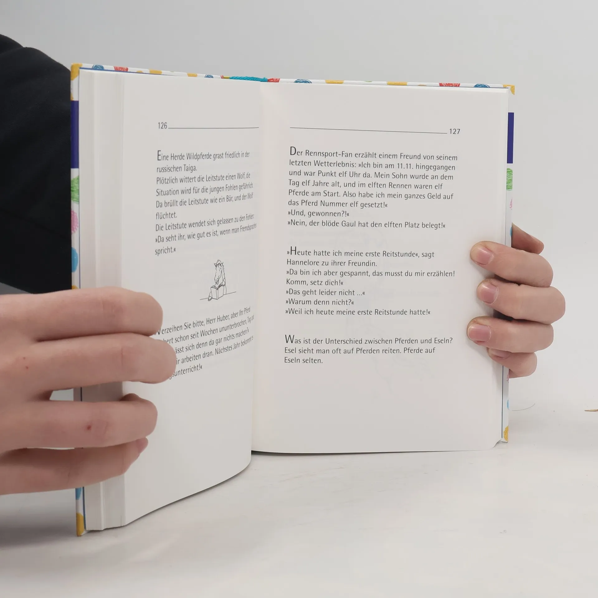 Die lustigsten Pferdewitze und verrücktesten Scherzfragen zum Schmunzeln, Lachen und Weitererzählen: Mit diesem Witzebuch sind Lachkrämpfe bei kleinen und großen Pferdefans garantiert. Treffsichere Illustrationen sorgen für noch mehr Spaß. Da bleibt kein Auge trocken!